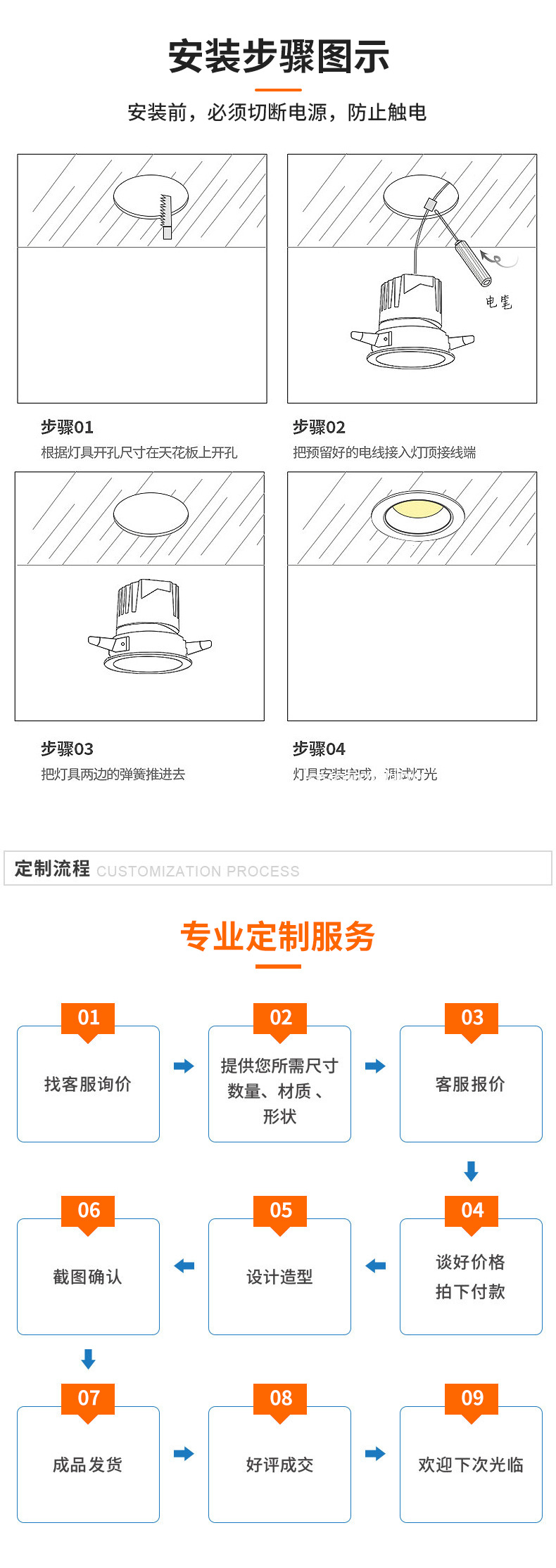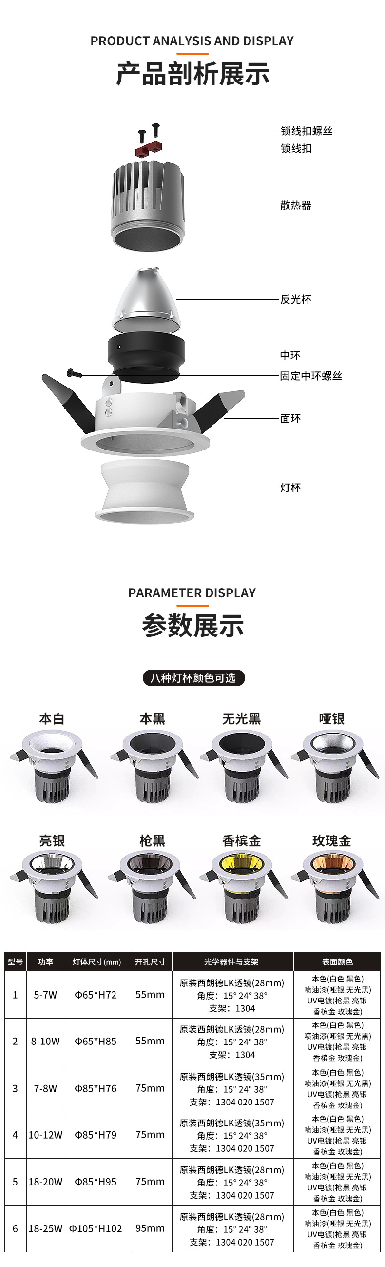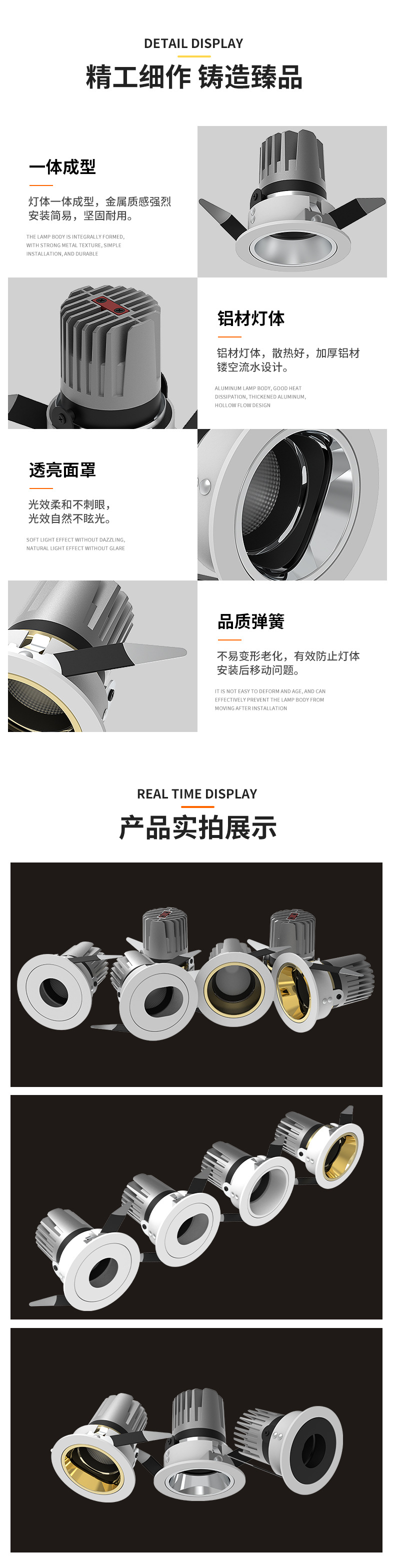 LED筒灯深藏防眩光射灯嵌入式可调角度COB射灯天花洗墙灯无主灯