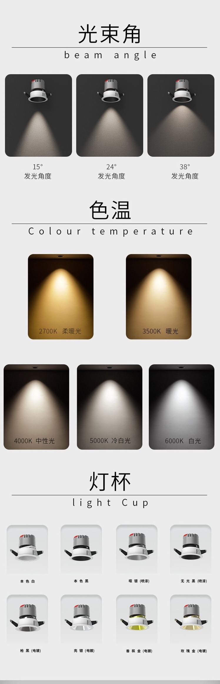 嵌入式LED小射灯小山丘深藏防眩光酒柜展柜COB天花窄边洗墙灯射灯