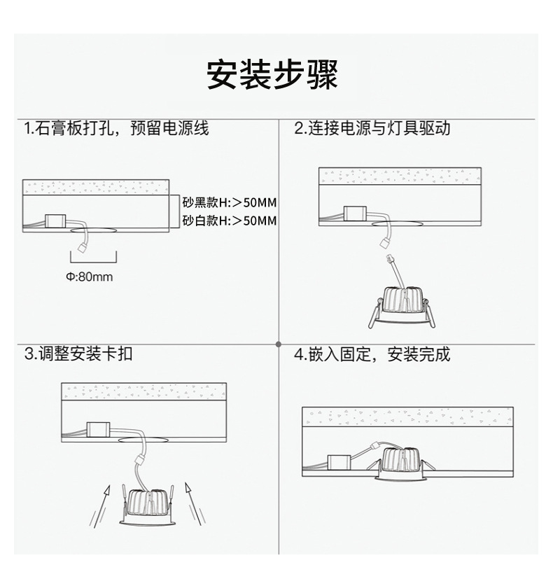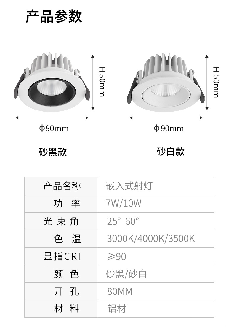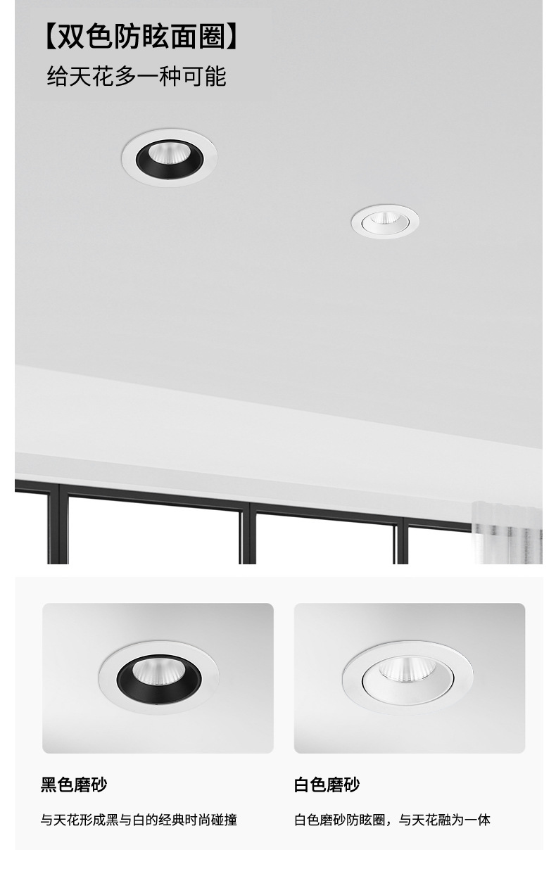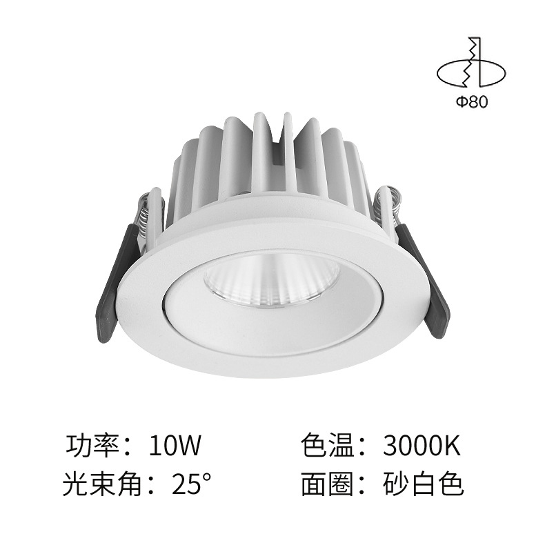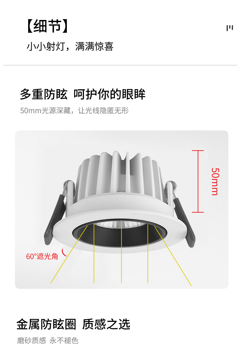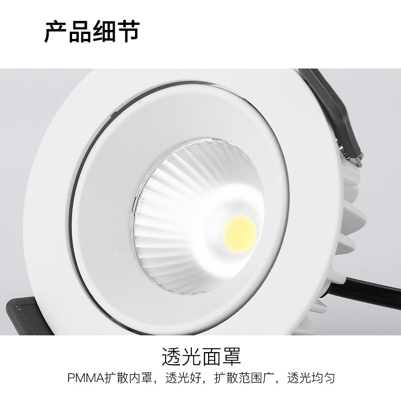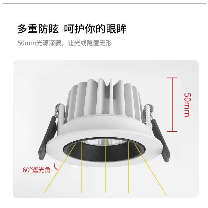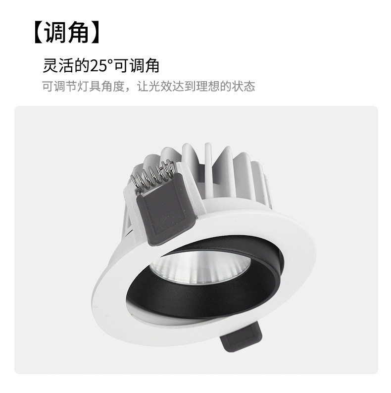 COB防眩射灯嵌入式角度可调开孔75无主灯深杯筒灯家用走廊led照明