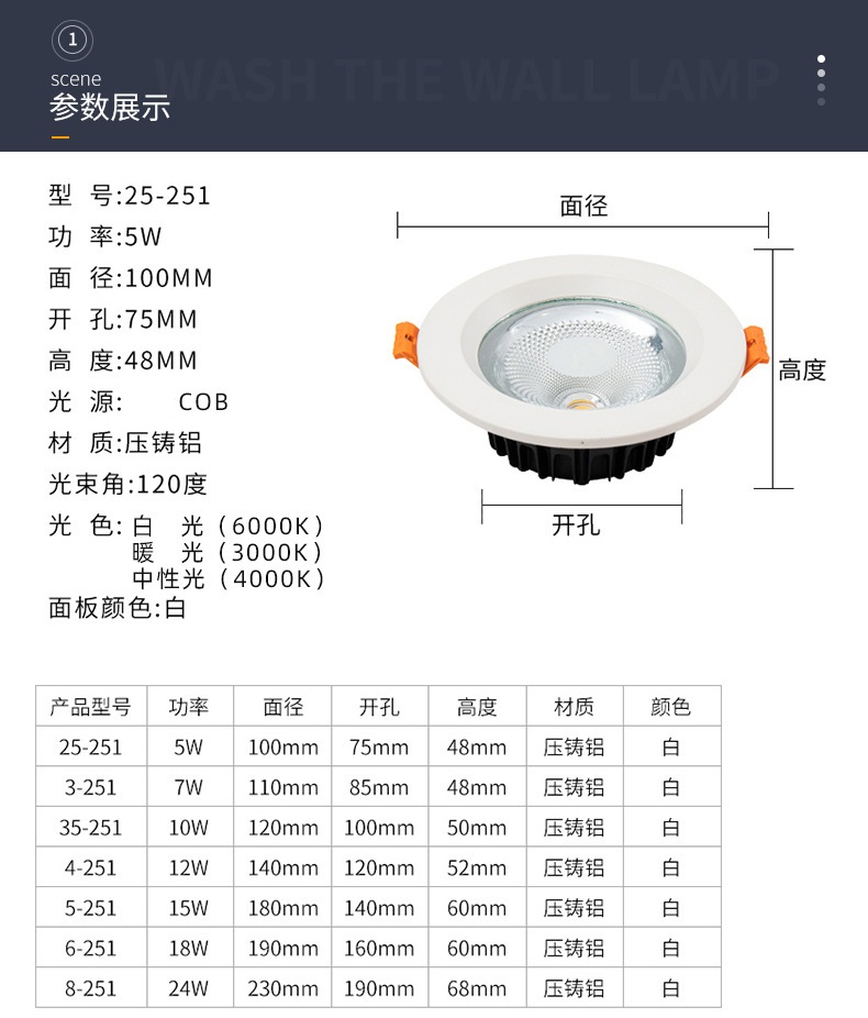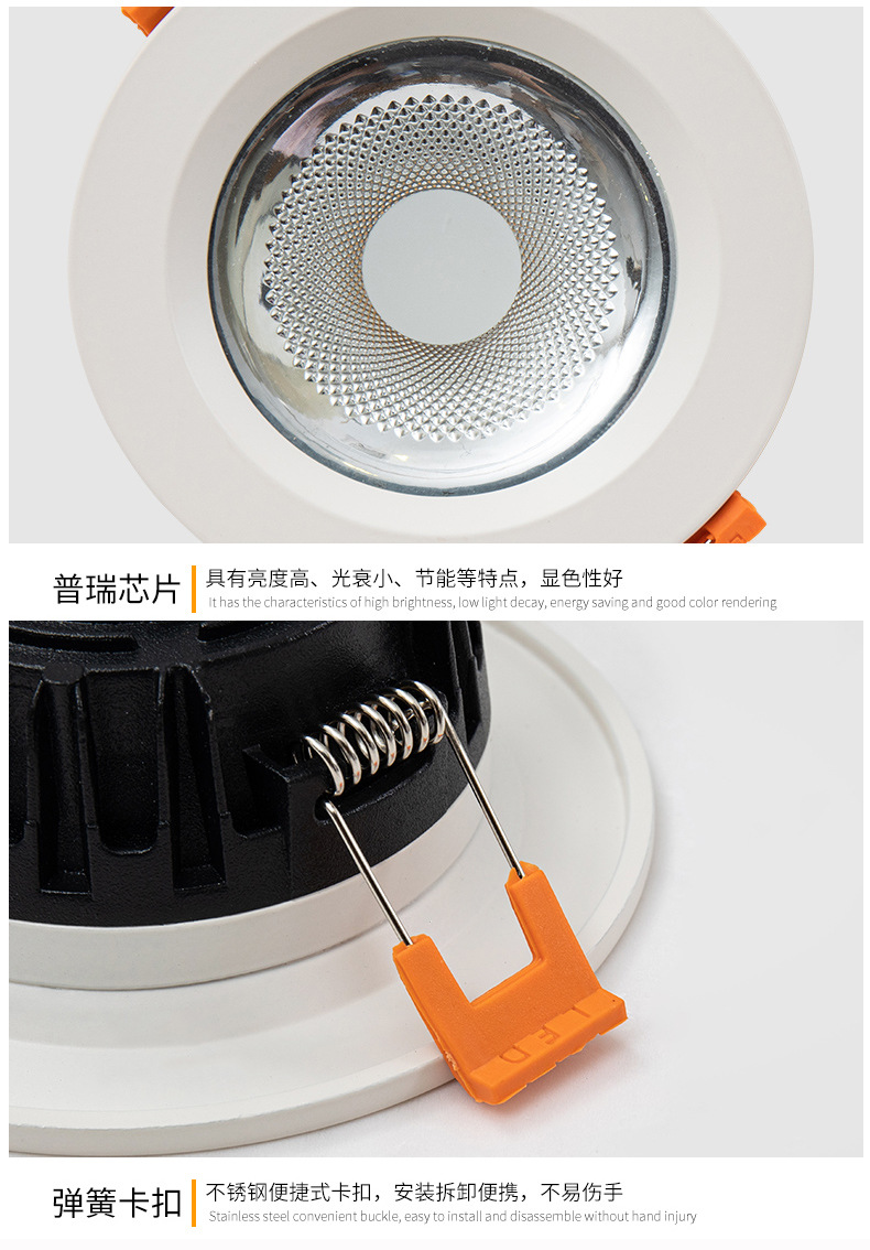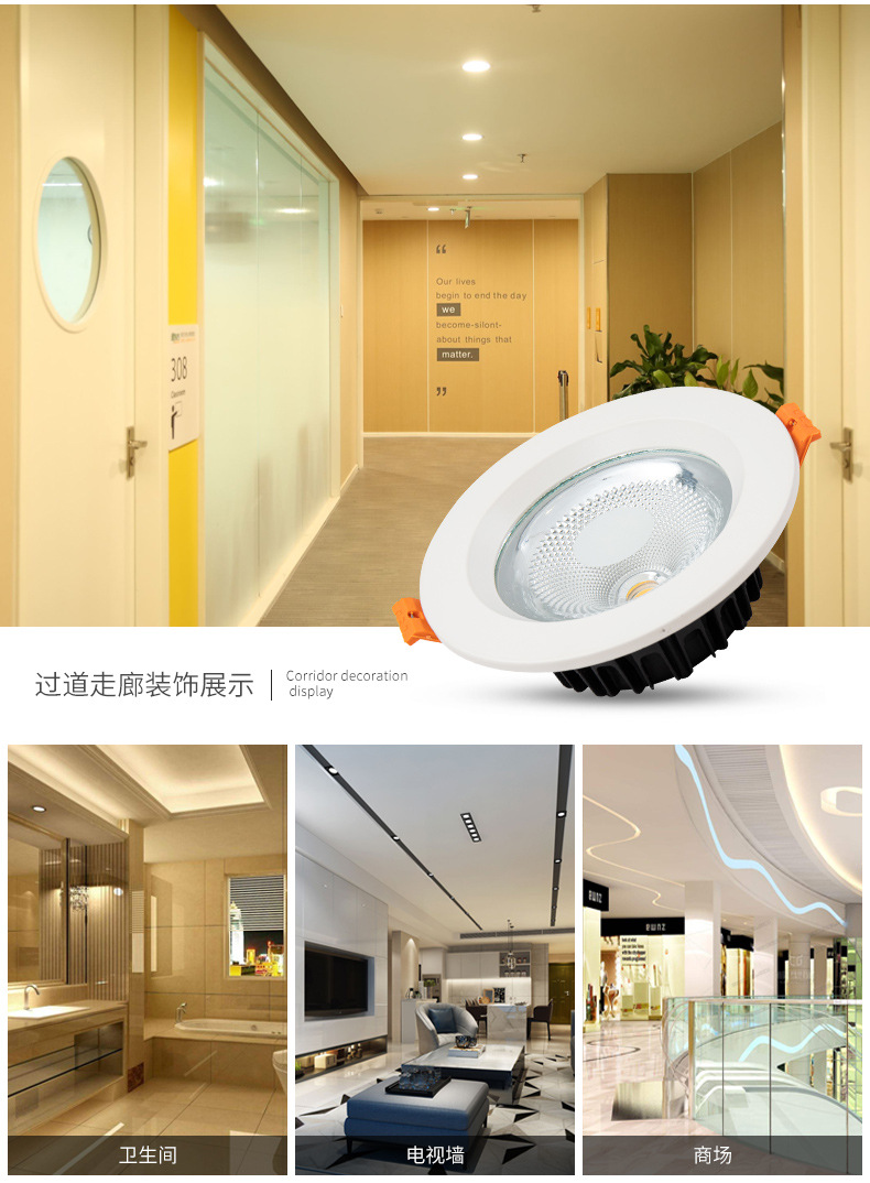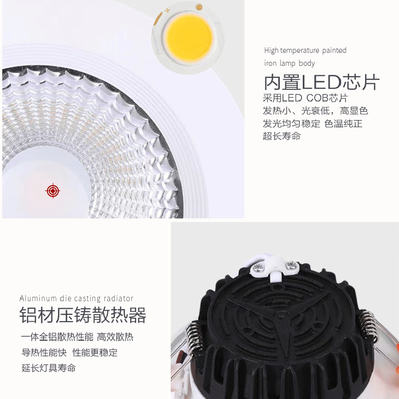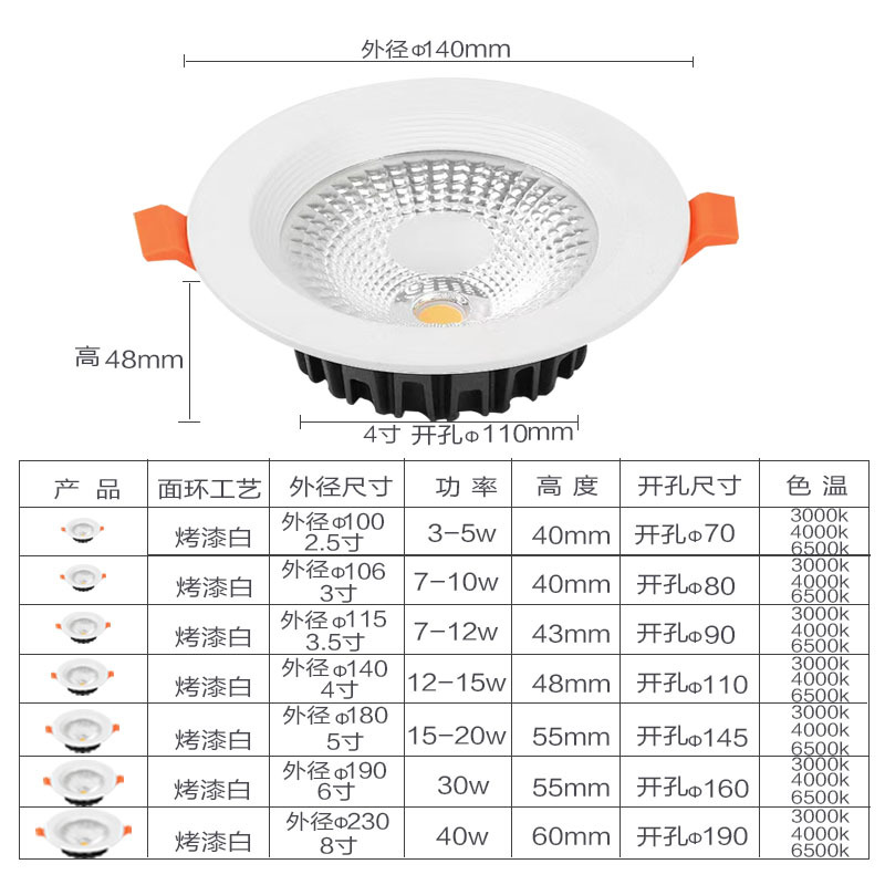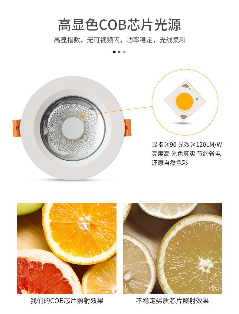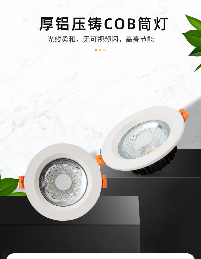COB嵌入式筒灯高亮LED天花筒射灯家用商业照明高显色防眩光洗墙灯