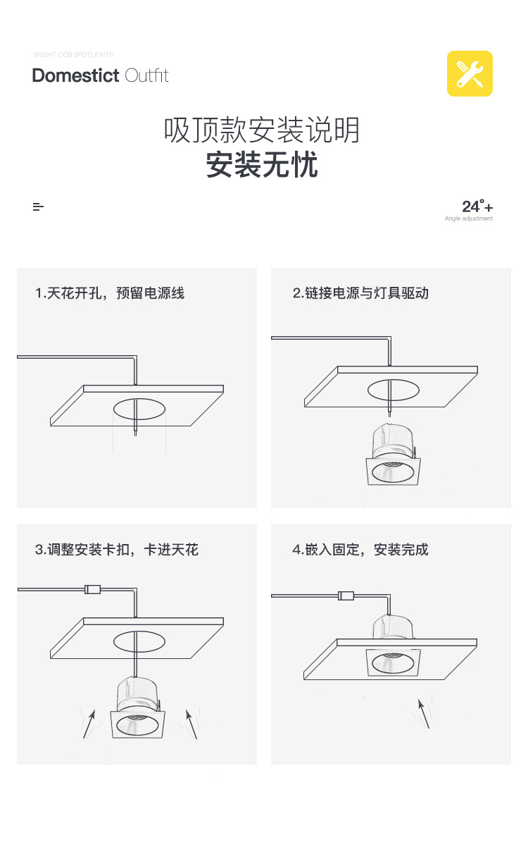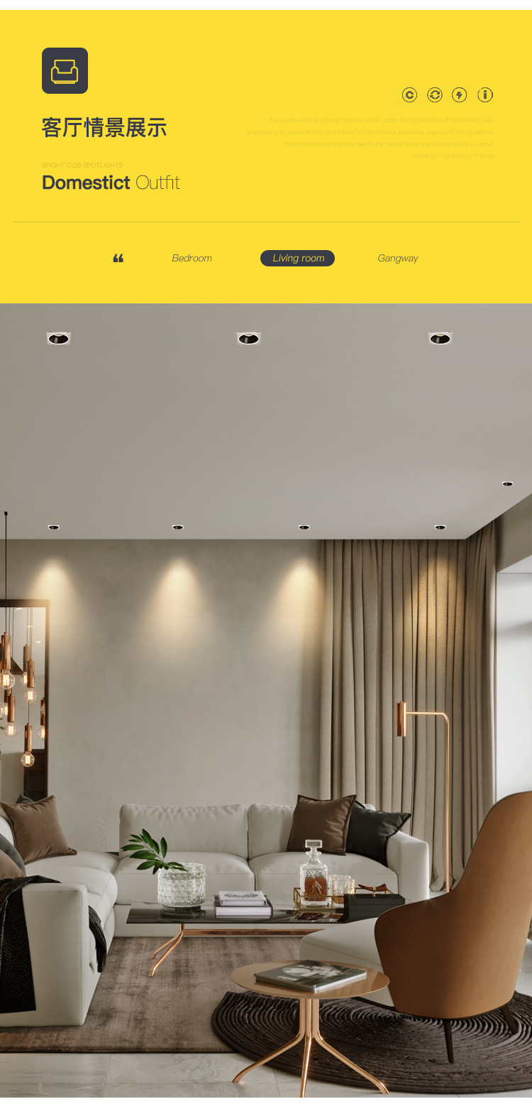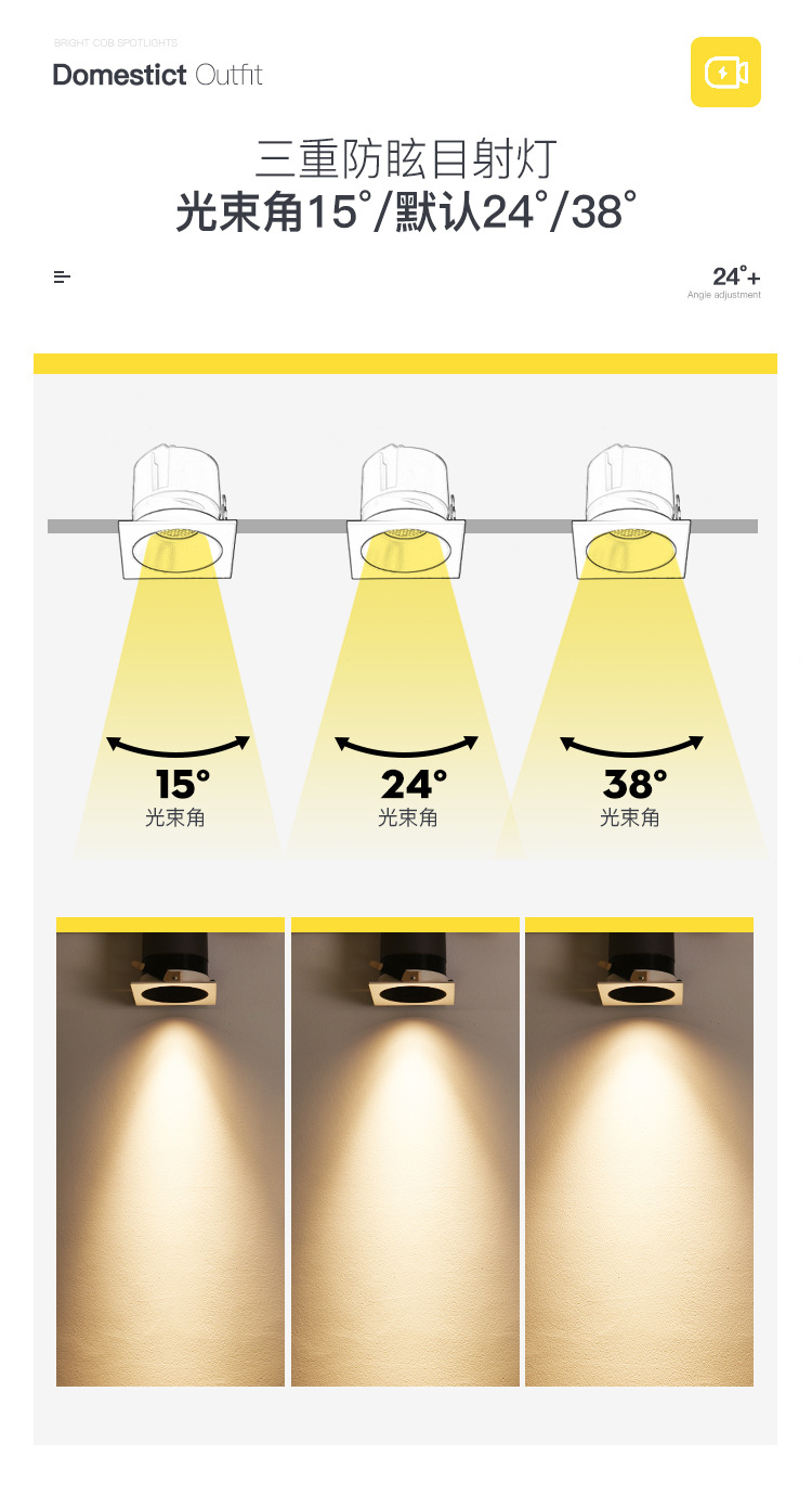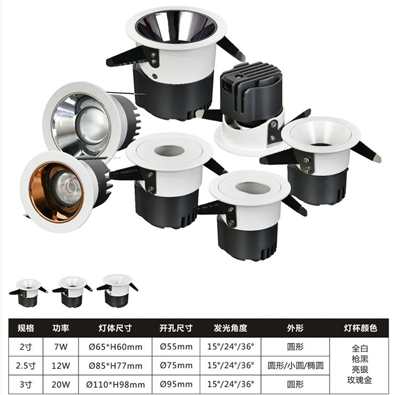 高显光源深防眩LED射灯嵌入式家用无主灯洗墙家用客厅COB天花射灯