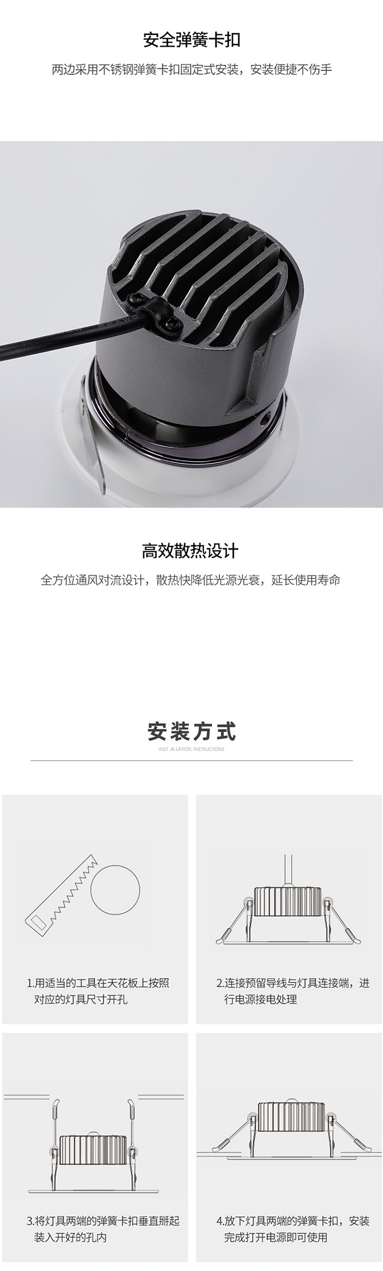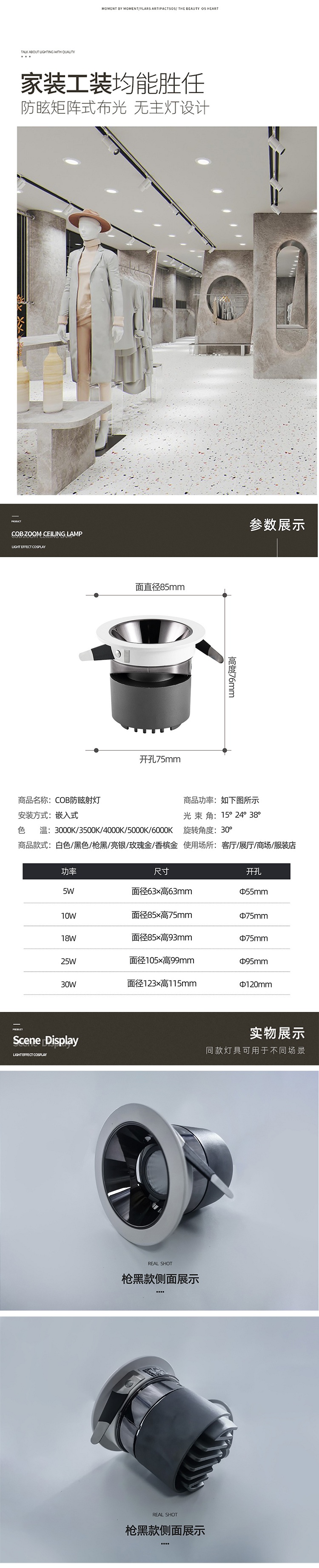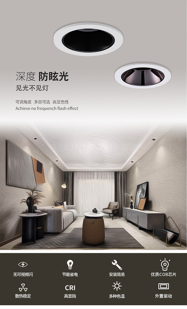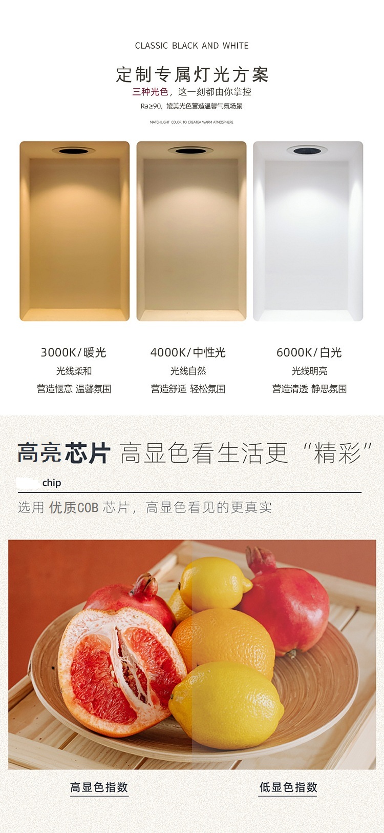 LED深防眩窄边框射灯COB聚光灯嵌入式家用别墅无主灯天花洗墙灯