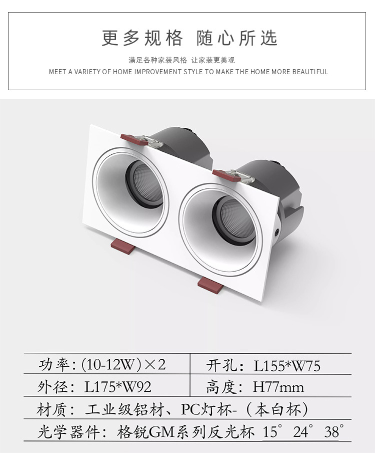 嵌入式家用LED射灯深防眩光商用别墅酒店COB筒射灯天花洗墙无主灯