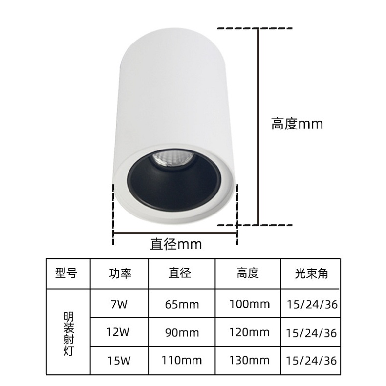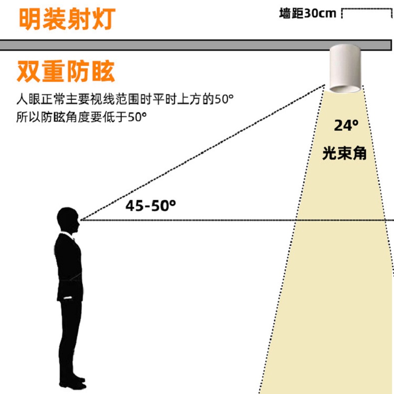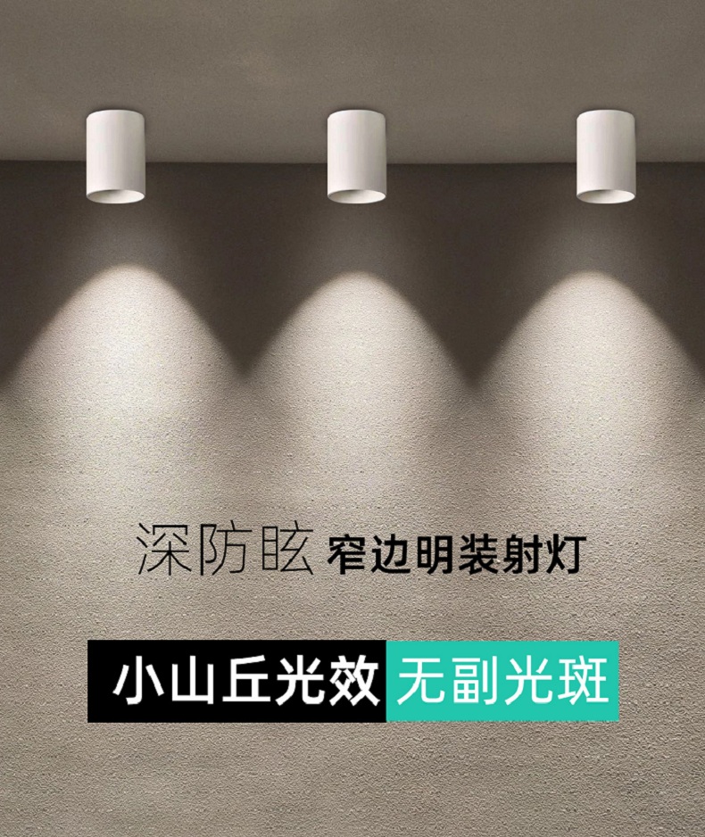 明装LED深防眩光射灯家用客厅过道COB射灯免开孔无主圆形吸顶筒灯