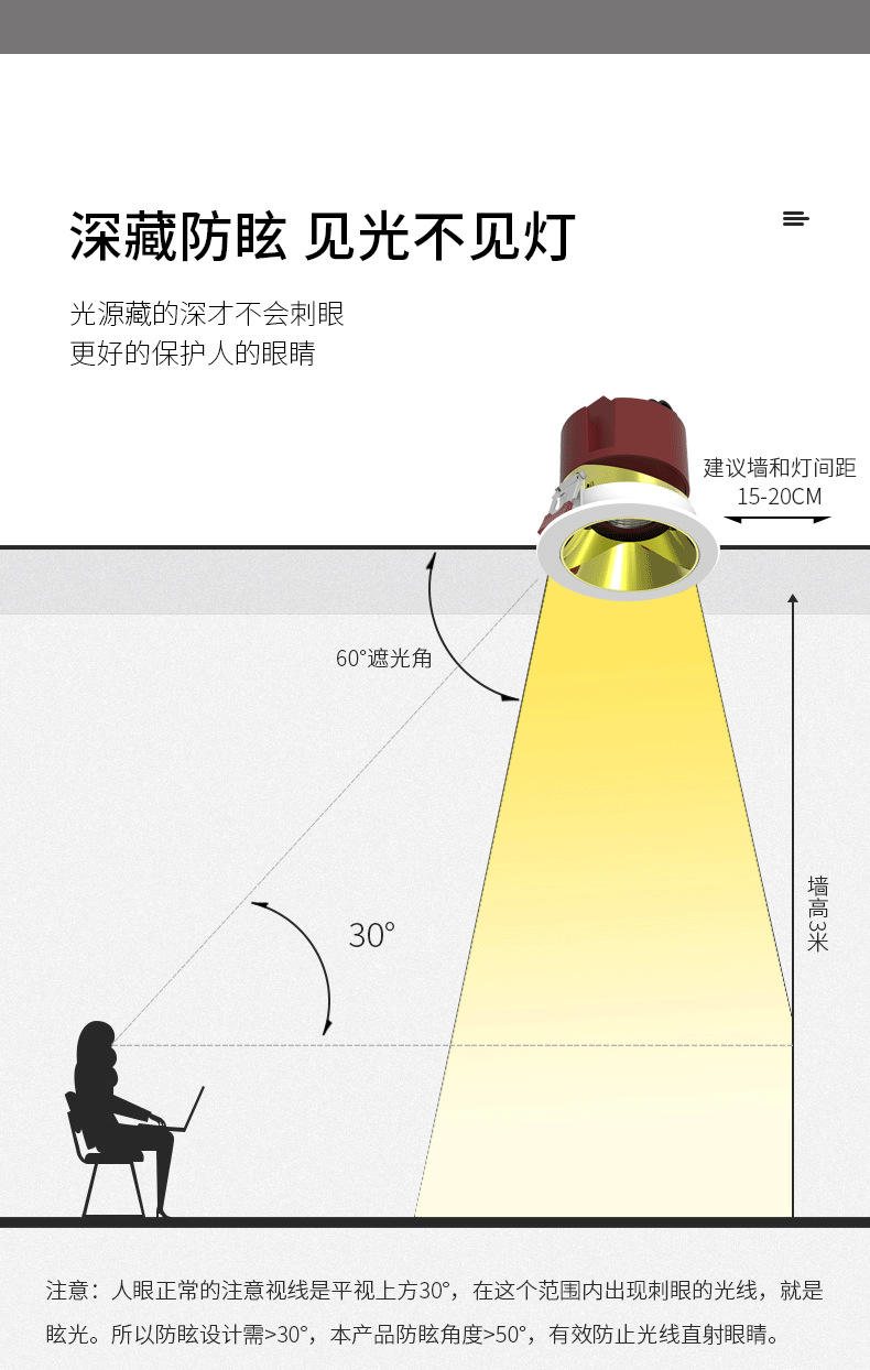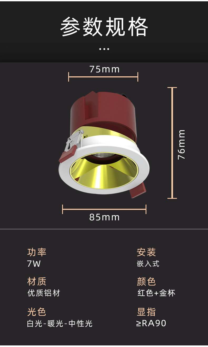 家装LED射灯嵌入式深防眩光COB射灯客厅卧室照明7W无主灯洗墙射灯