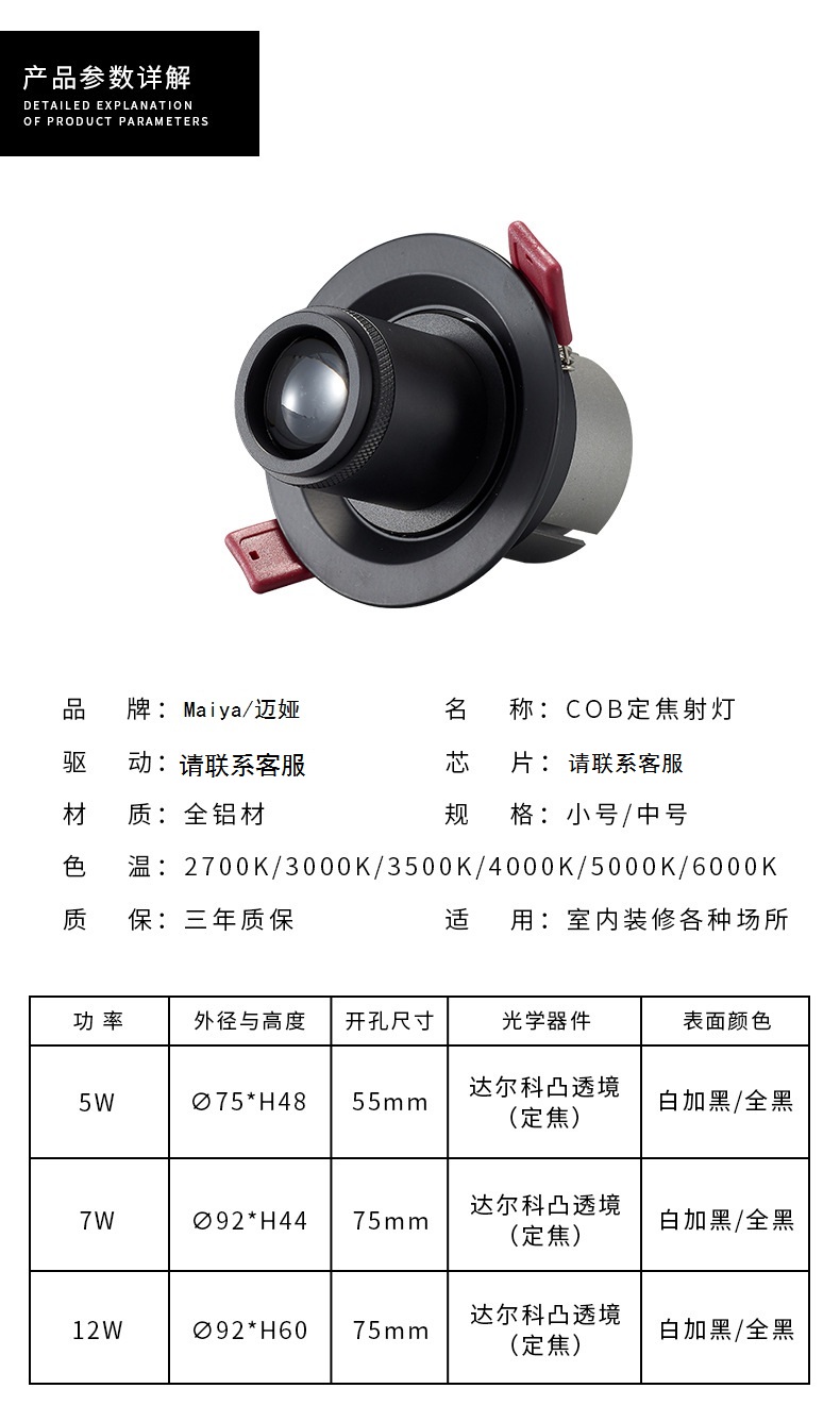 COB筒灯防眩调焦LED射灯嵌入式客厅卧室楼梯无主灯源头洗墙灯