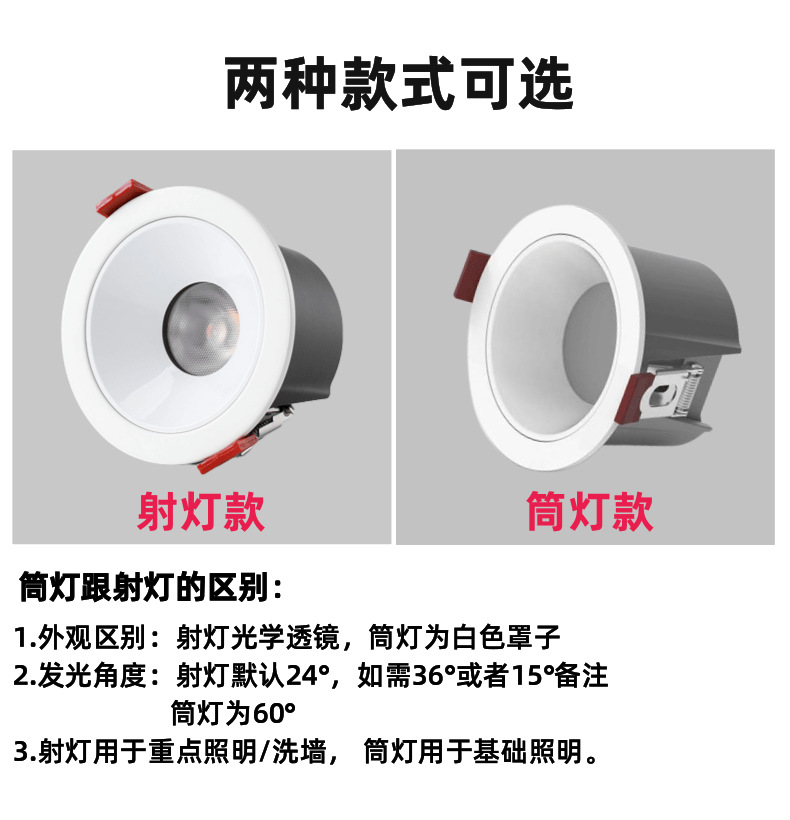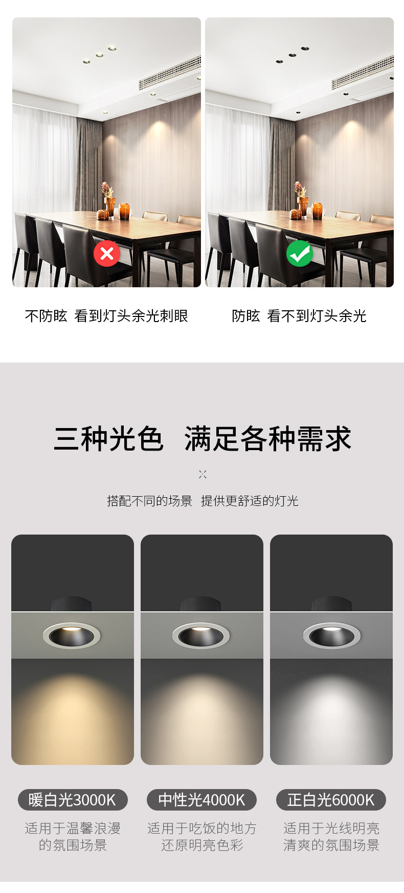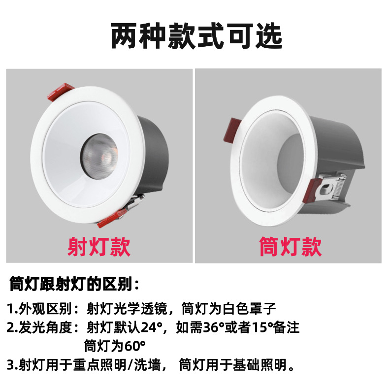 厂家小山丘射灯高显色防眩光LED射灯COB筒灯嵌入式家用无主灯