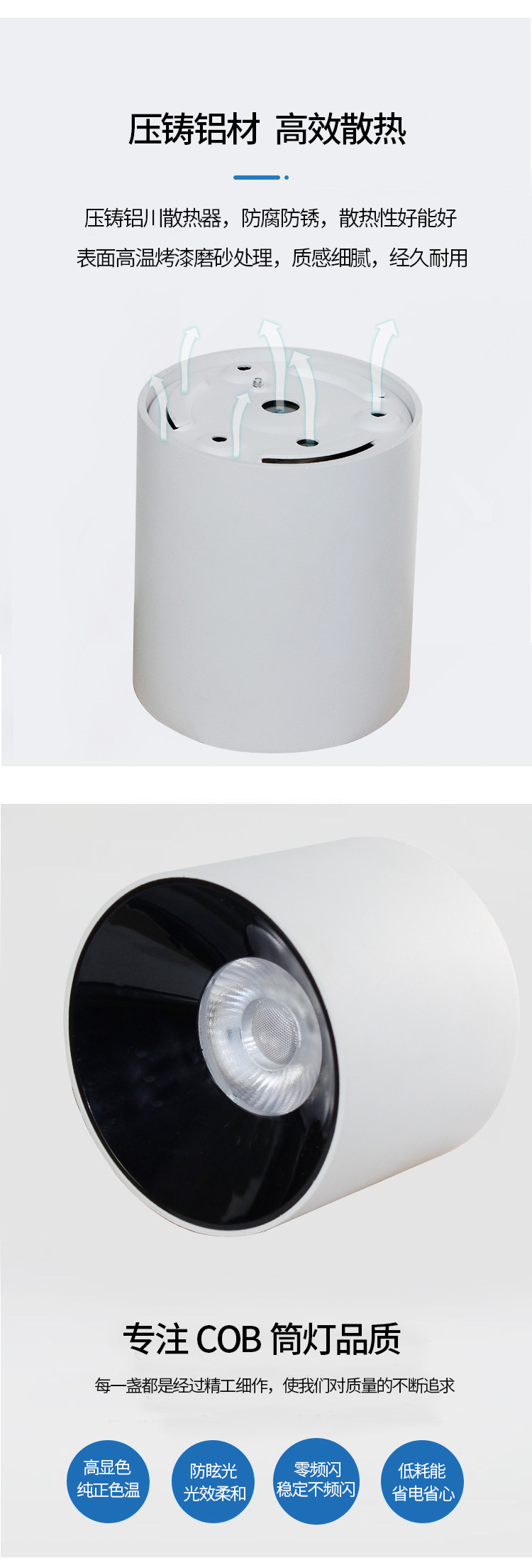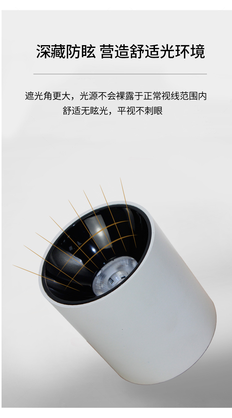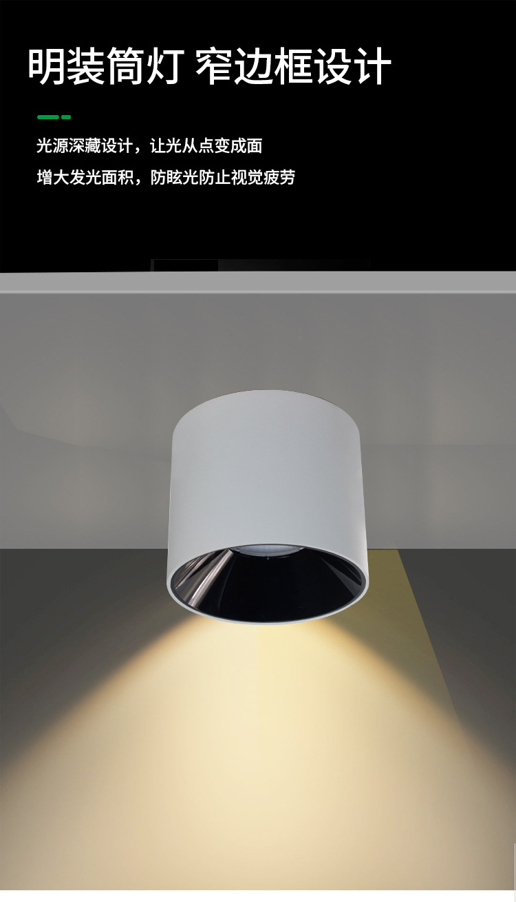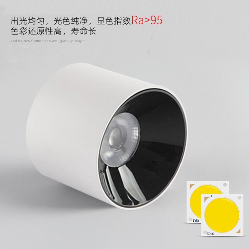 明装LED筒灯免开孔店铺吸顶式COB射灯客厅背景墙家用高显色天花灯