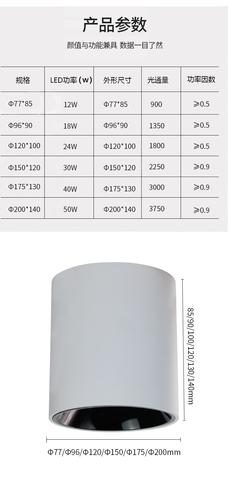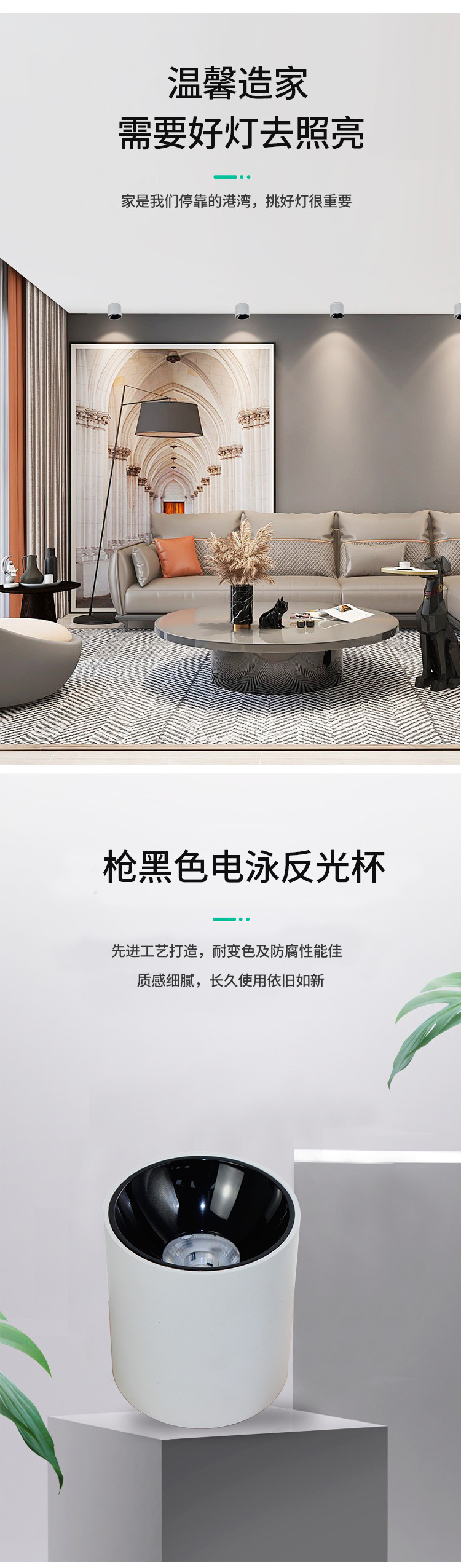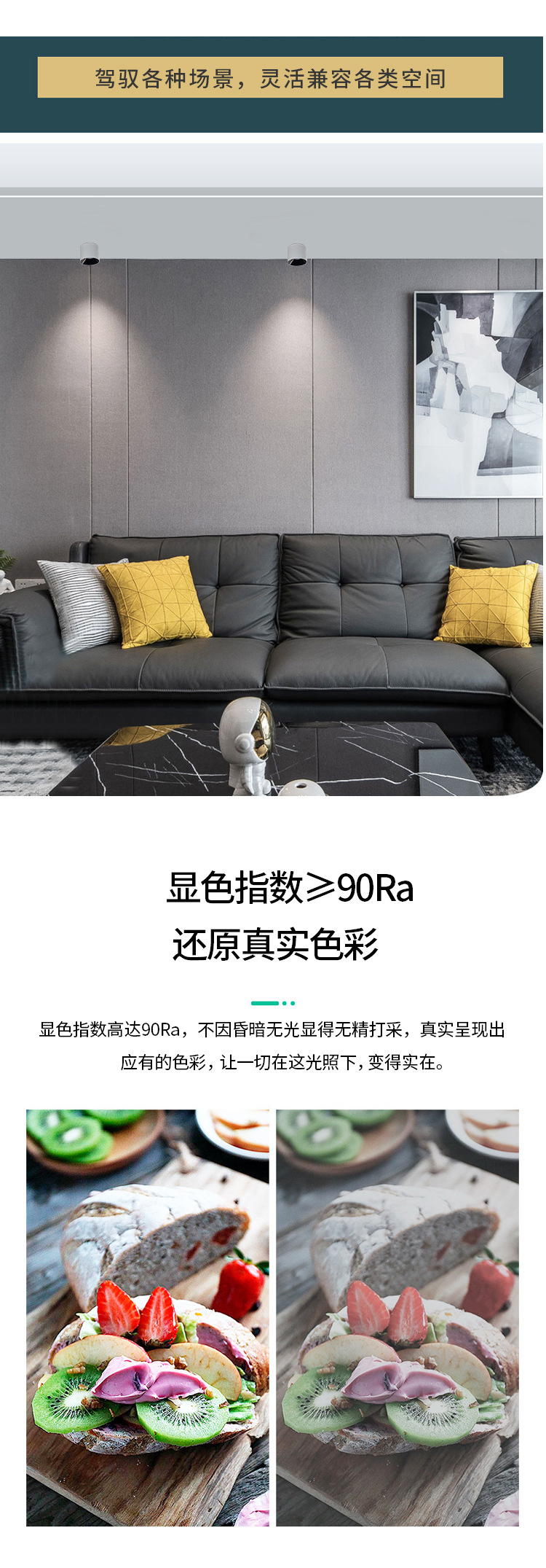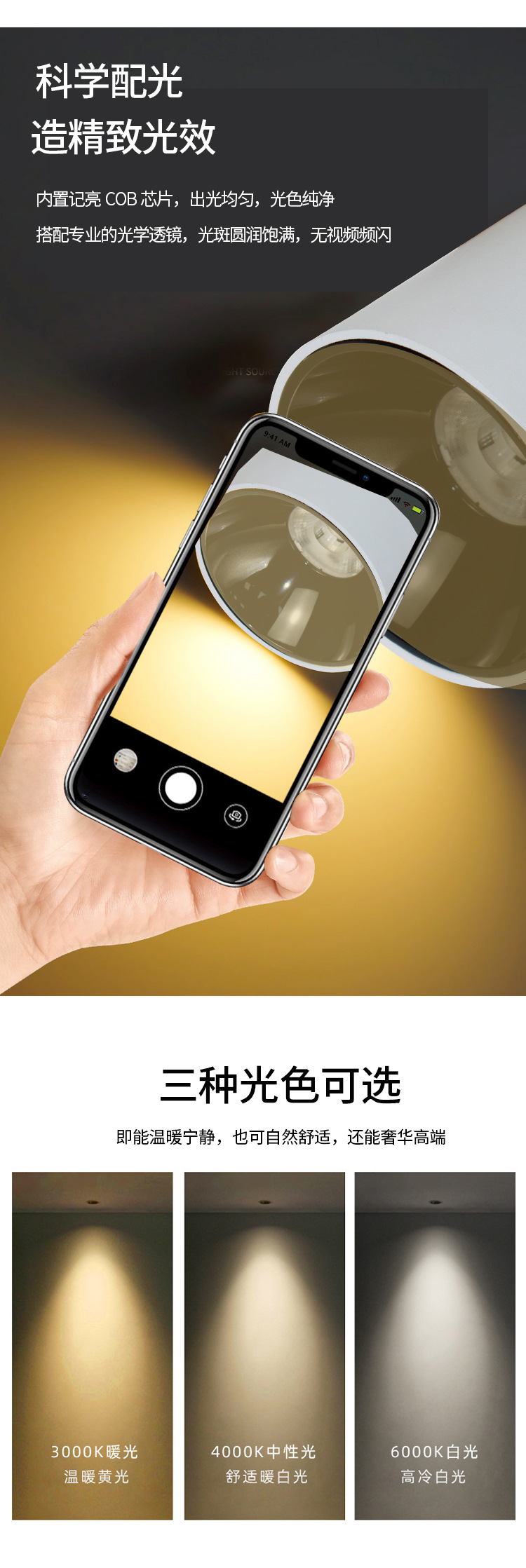 明装LED筒灯免开孔店铺吸顶式COB射灯客厅背景墙家用高显色天花灯