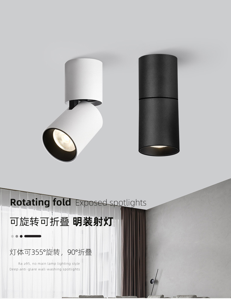 COB射灯LED明装可折叠旋转防眩筒灯吸顶免开孔高显色家用天花灯