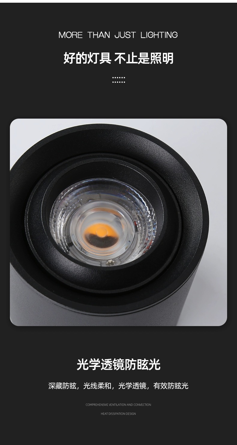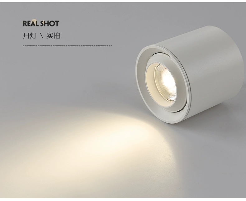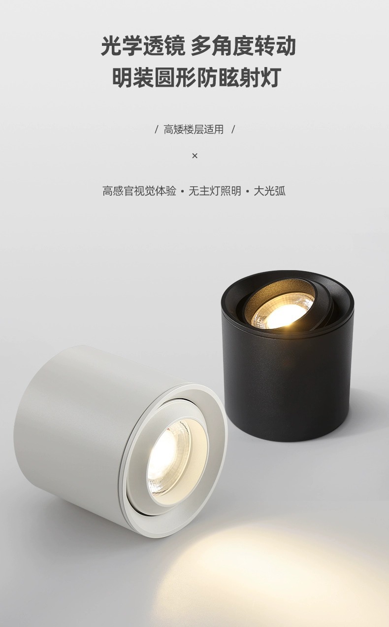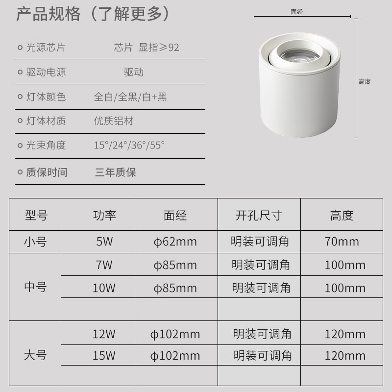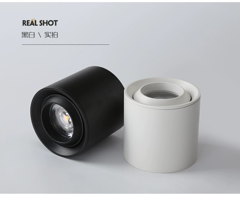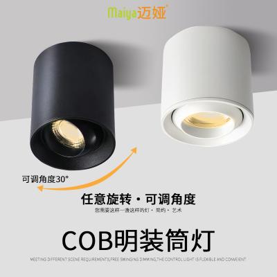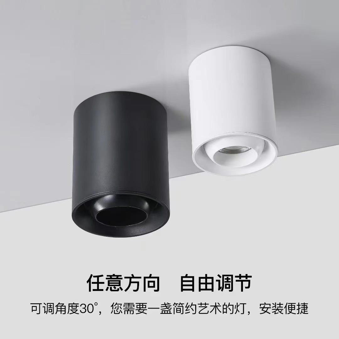 LED明装筒灯圆形吸顶式深藏防眩可调角度免开孔商家用COB天花射灯
