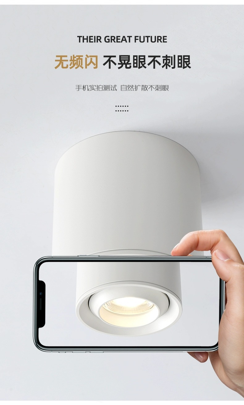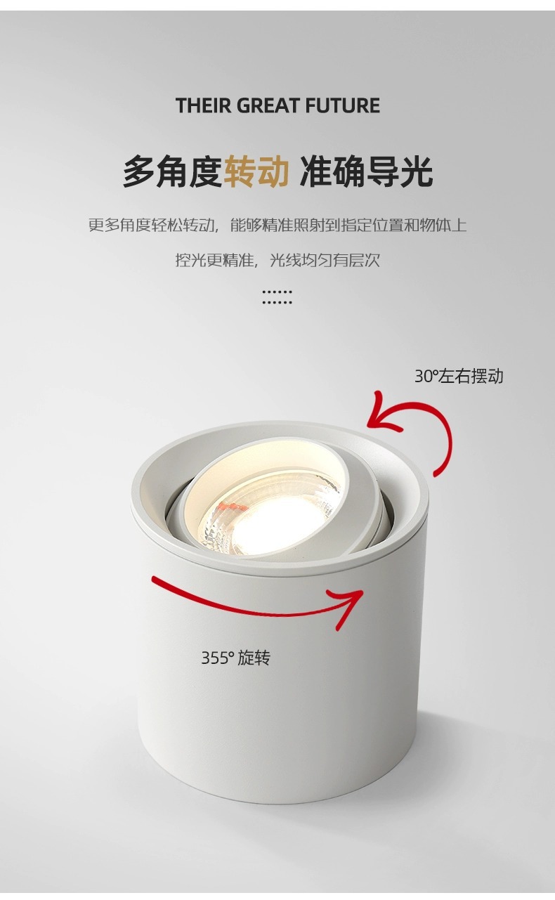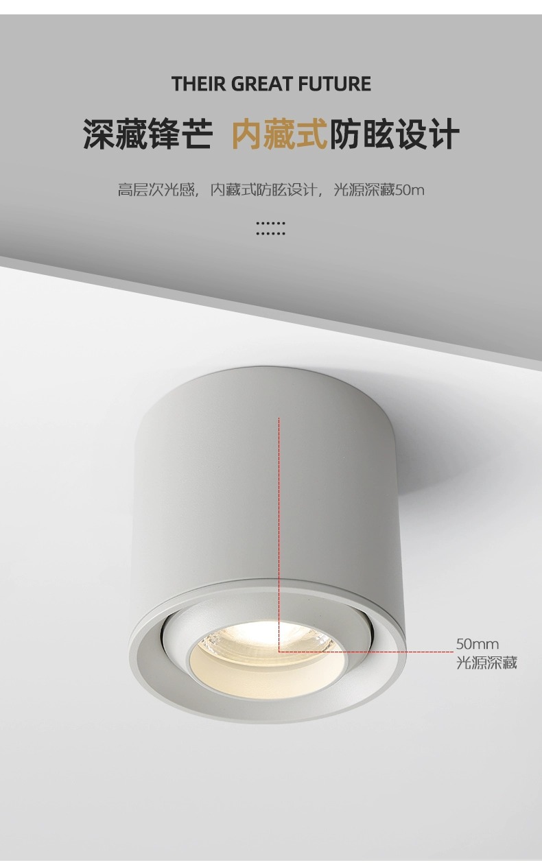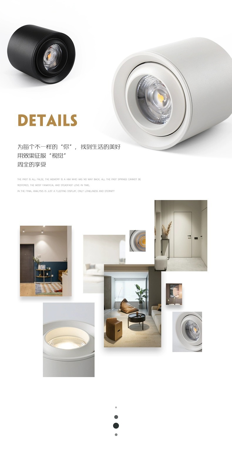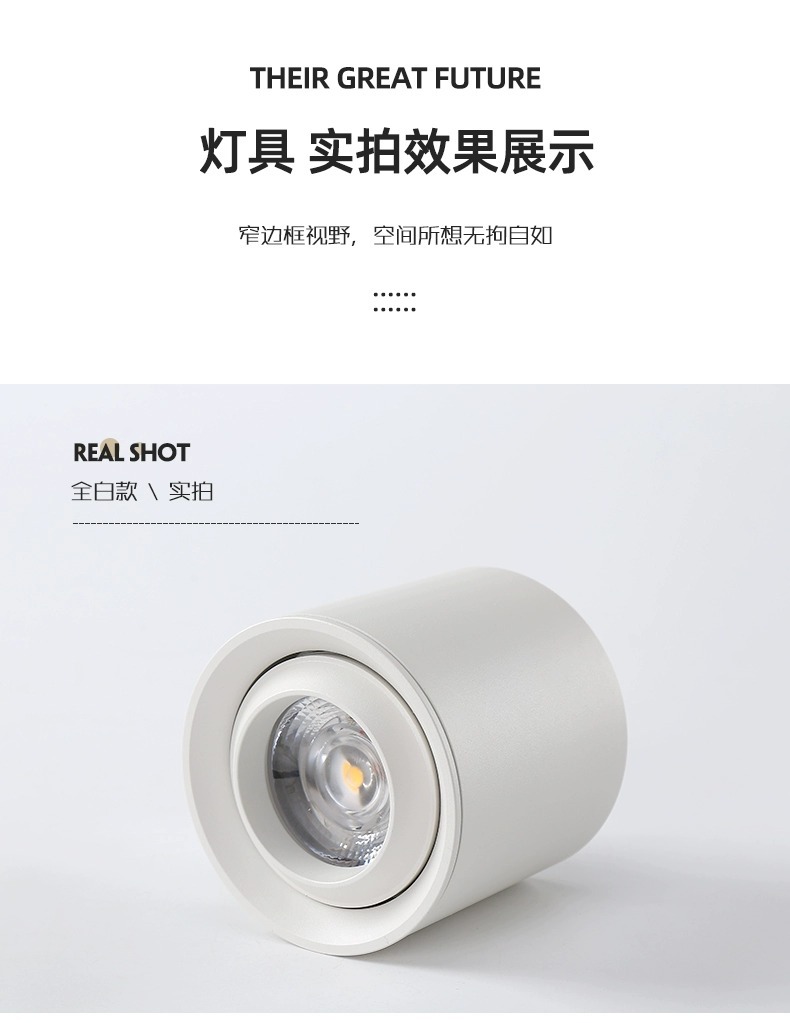 LED明装筒灯圆形吸顶式深藏防眩可调角度免开孔商家用COB天花射灯