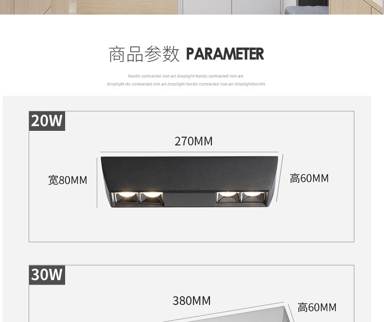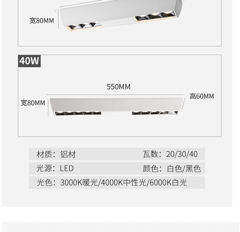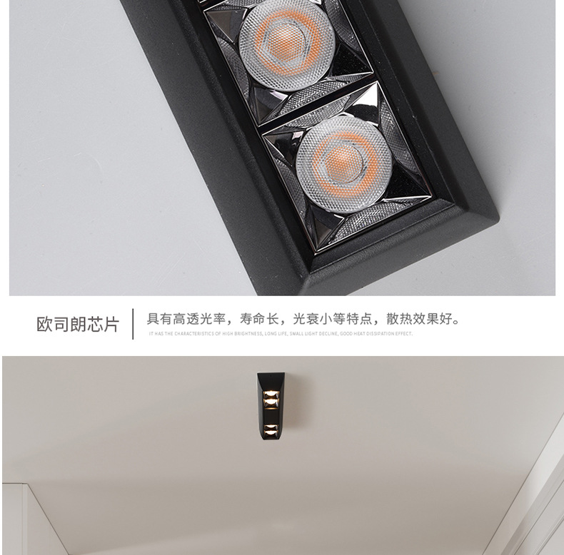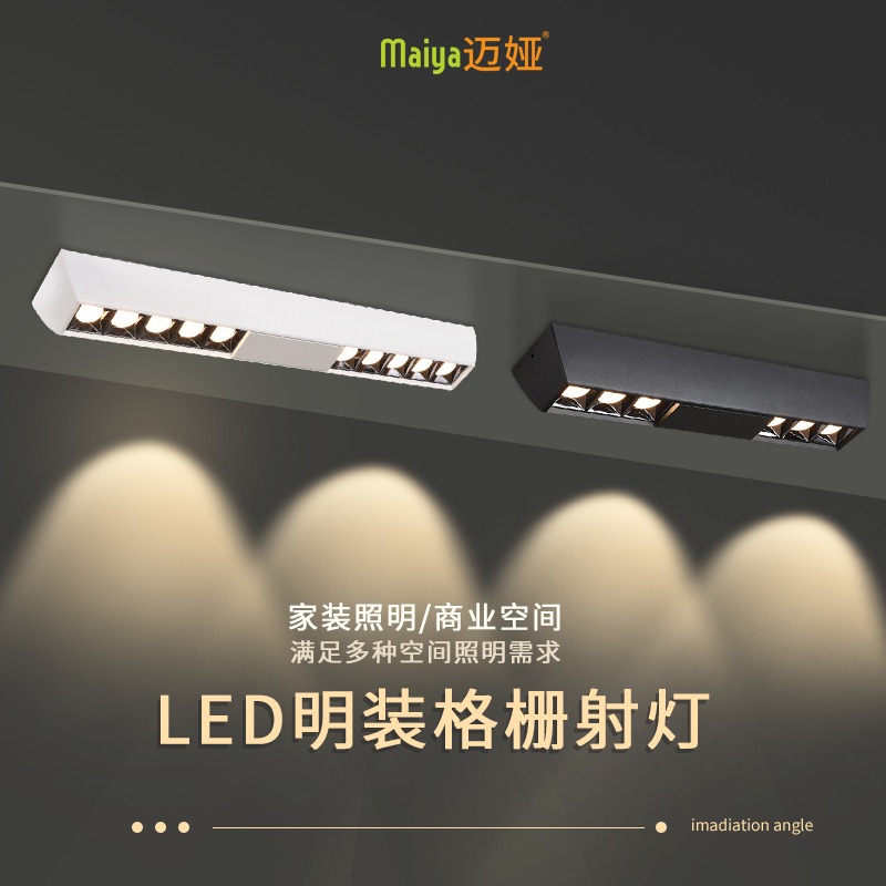 LED明装线形射灯格栅长条斗胆灯双头吸顶过道客厅天花无主灯筒灯