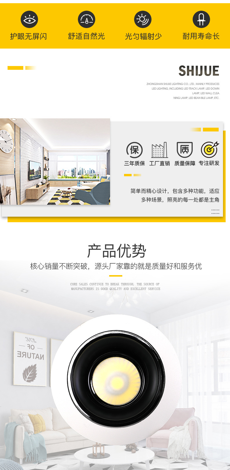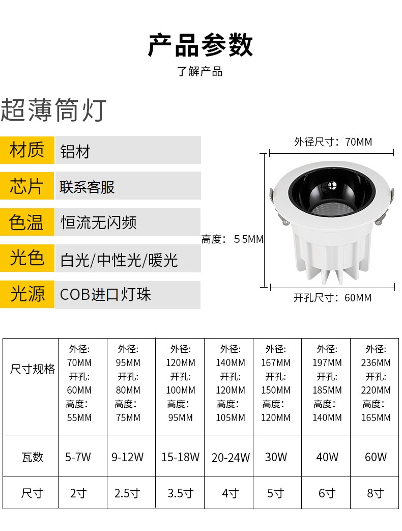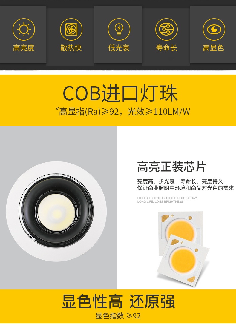 COB射灯防眩目嵌入式LED筒灯家用客厅酒店高显色窄边天花无主灯