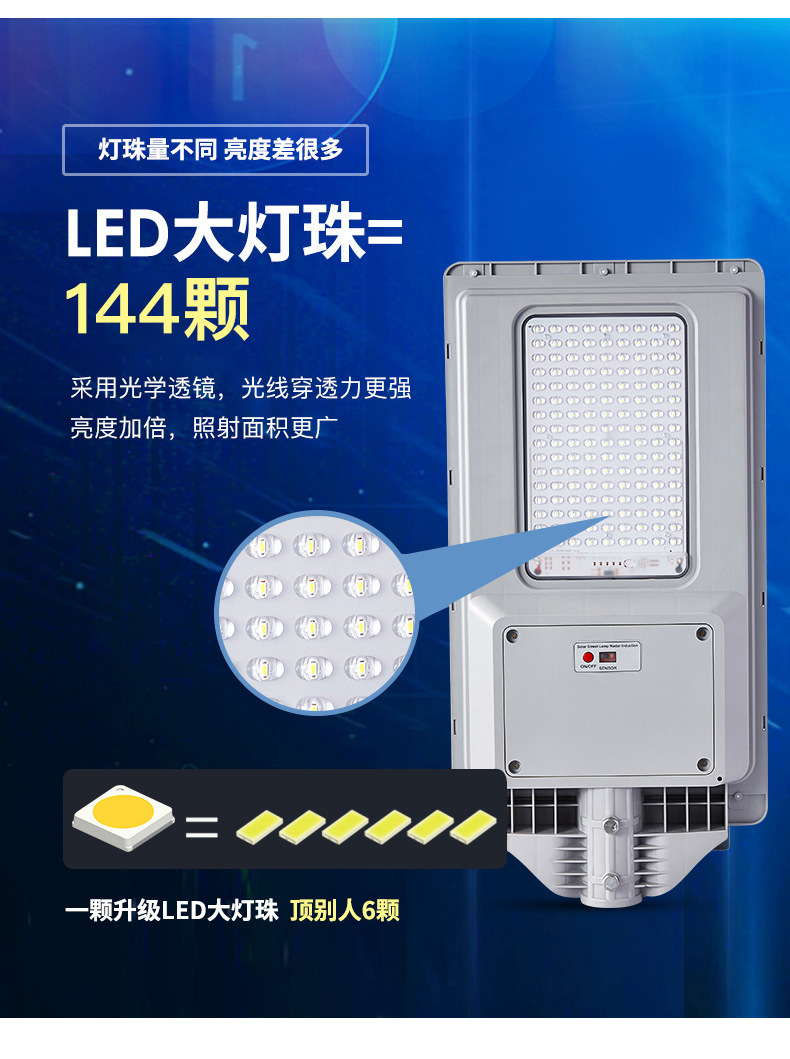 小透镜150W-144珠-照射面积150-180平方-光控+遥控+雷达感应