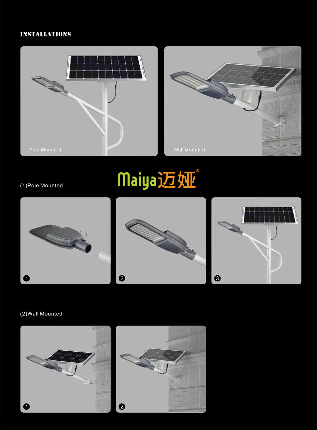 4、坚固耐用:太阳能路灯外壳采用高质量的压铸铝制成,确保坚固性和长寿命。这种材料还有助于有效散热,延长路灯的使用寿命。