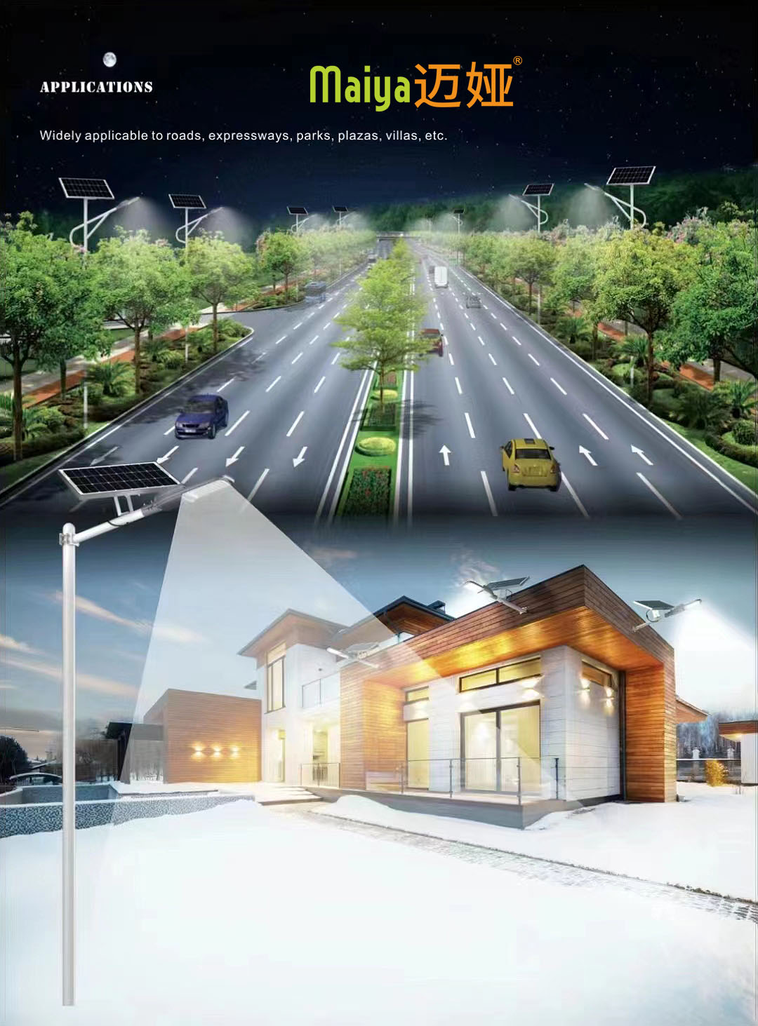 7、多种应用:LED太阳能路灯适用于高速公路、主干道和公园等各种道路照明应用。它们的适用性使其成为照明不同类型道路和户外空间的理想选择。