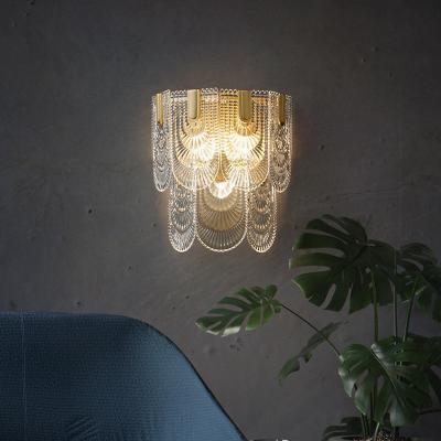 水晶壁灯铜客厅过道现代简约创意背景墙吊线卧室设计感床头灯