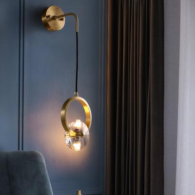 单头全铜吊灯背景墙壁灯简约过道走廊创意卧室床头全铜水晶壁灯