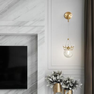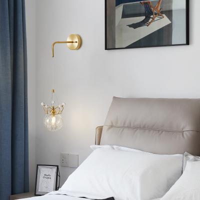 美式卧室全铜床头灯浪漫温馨灯具北欧创意玻璃皇冠儿童房壁灯