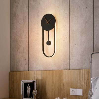 北欧卧室床头时钟表壁灯简约现代简约客厅背景墙走廊过道挂钟灯具