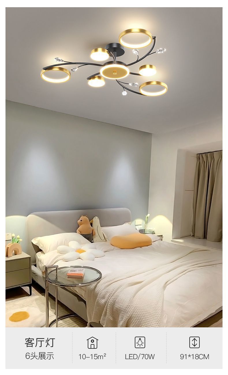 卧室吊灯温馨浪漫婚房主卧灯北欧卧室灯金色风铃吊灯