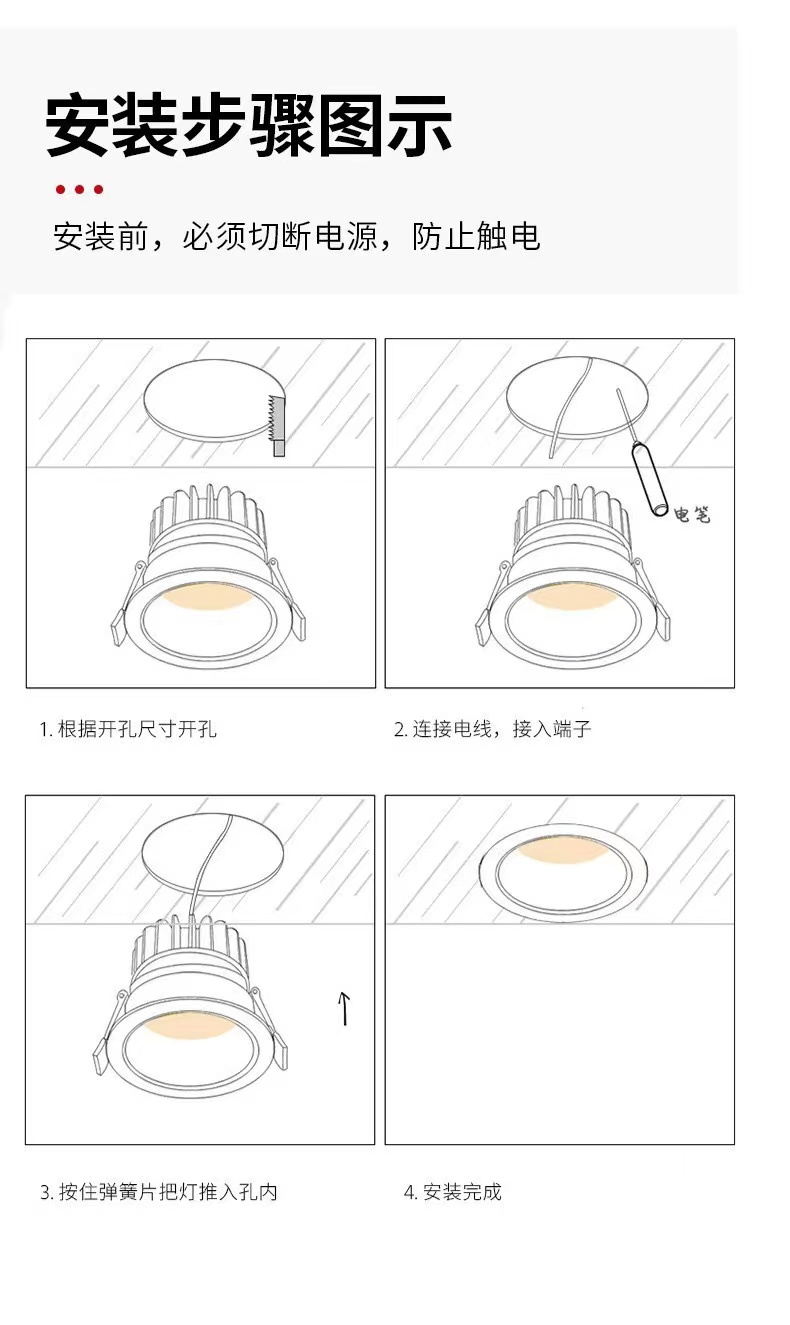 LED射灯嵌入式COB天花灯酒店工程家用高亮筒灯