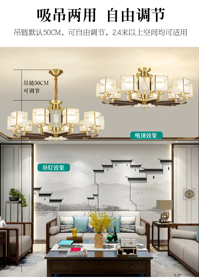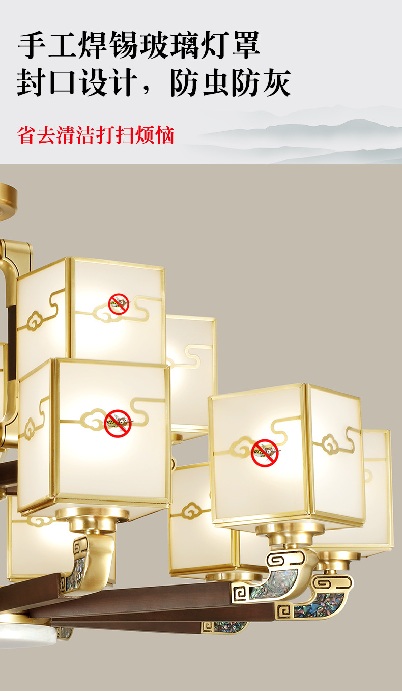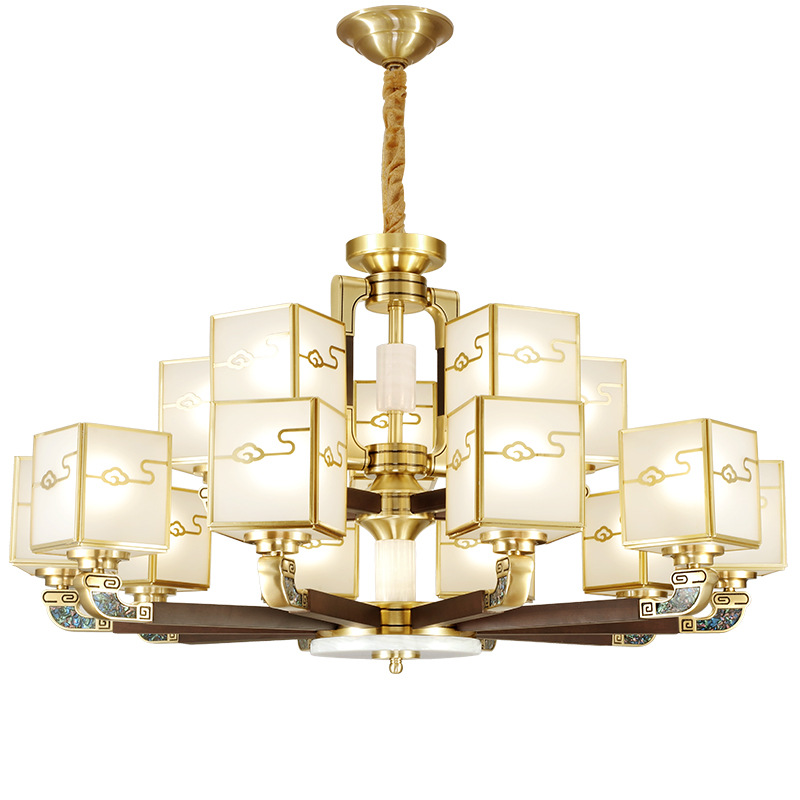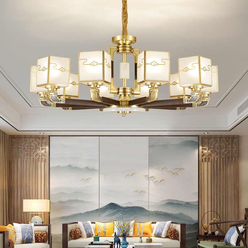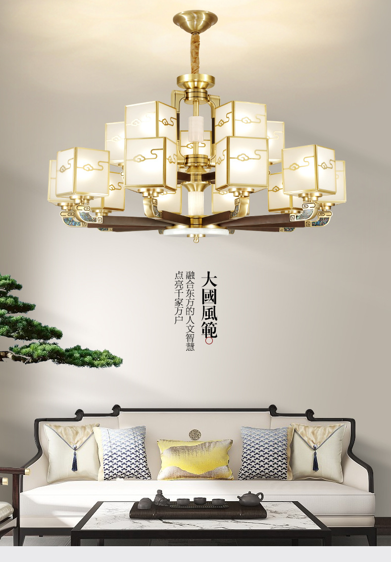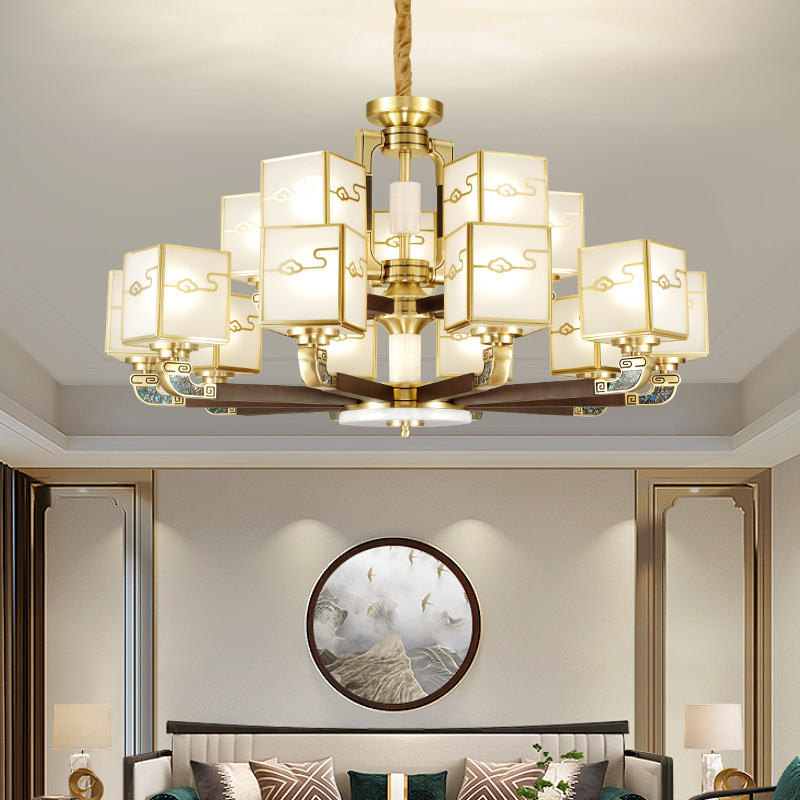 全铜吊灯玉石灯客厅灯餐厅书房卧室房间灯饰新中式别墅房间铜灯具