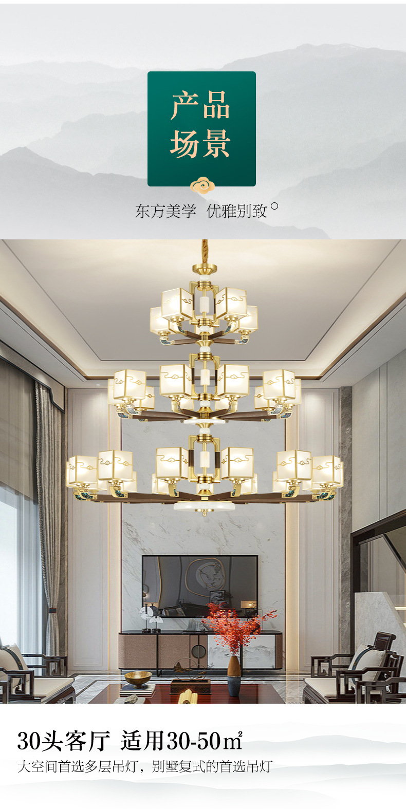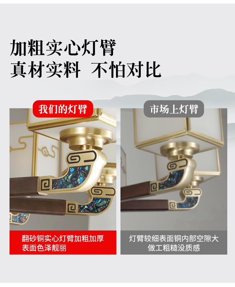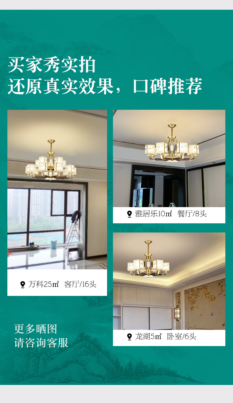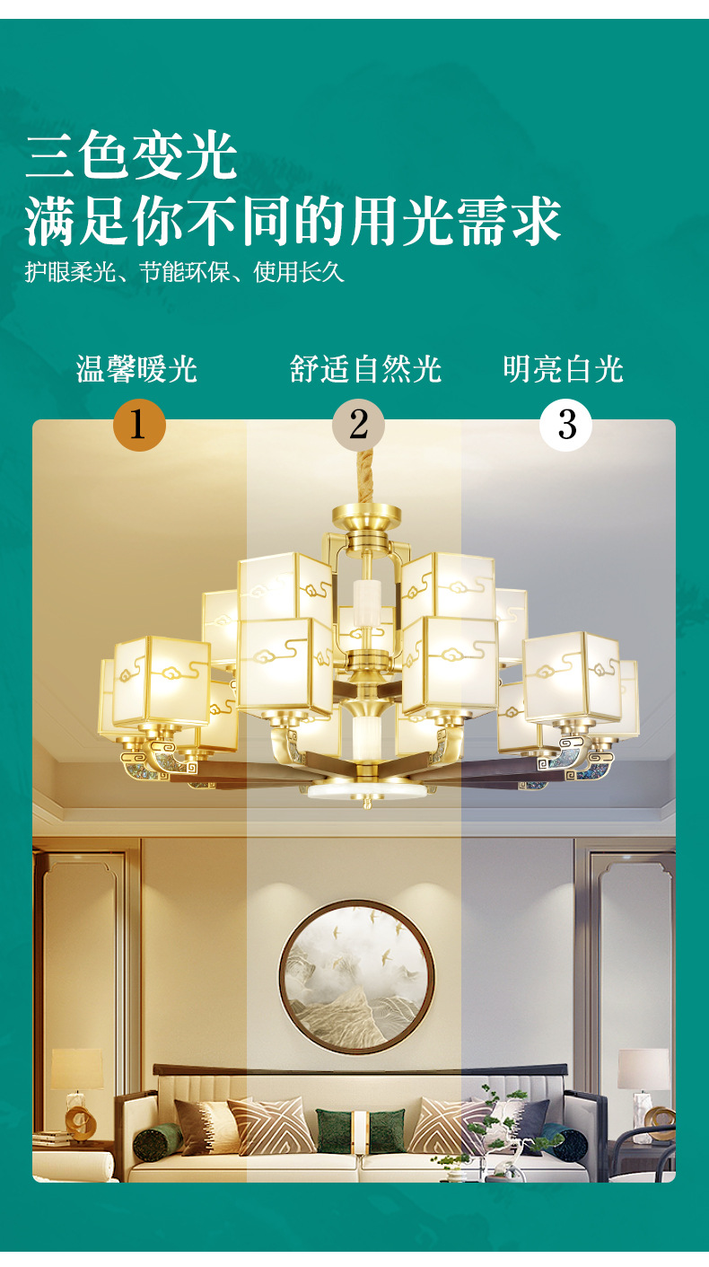 全铜吊灯玉石灯客厅灯餐厅书房卧室房间灯饰新中式别墅房间铜灯具