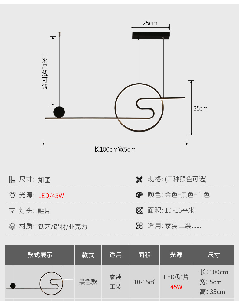 迈娅商城 新款餐厅吊灯led餐厅灯灯具