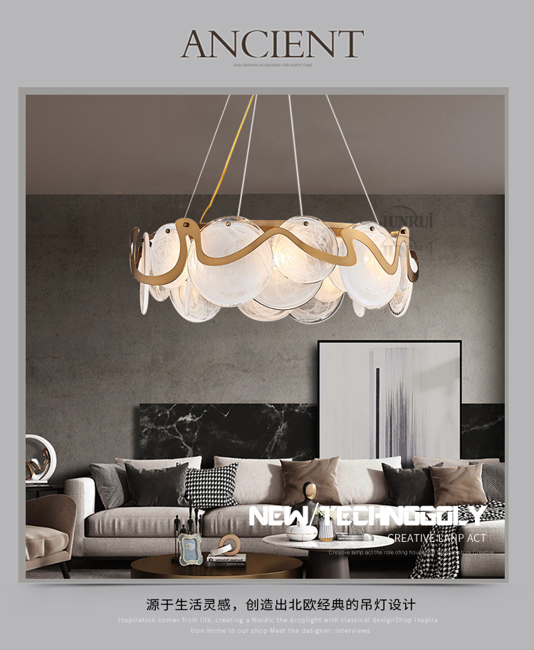 后现代客厅艺术吊灯简约烟灰玻璃餐厅卧室样板间网红水晶吊灯