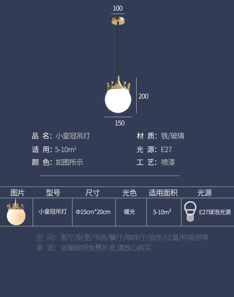 现代简约极简网红创意个性单头吧台餐厅主卧室床头皇冠长线小吊灯