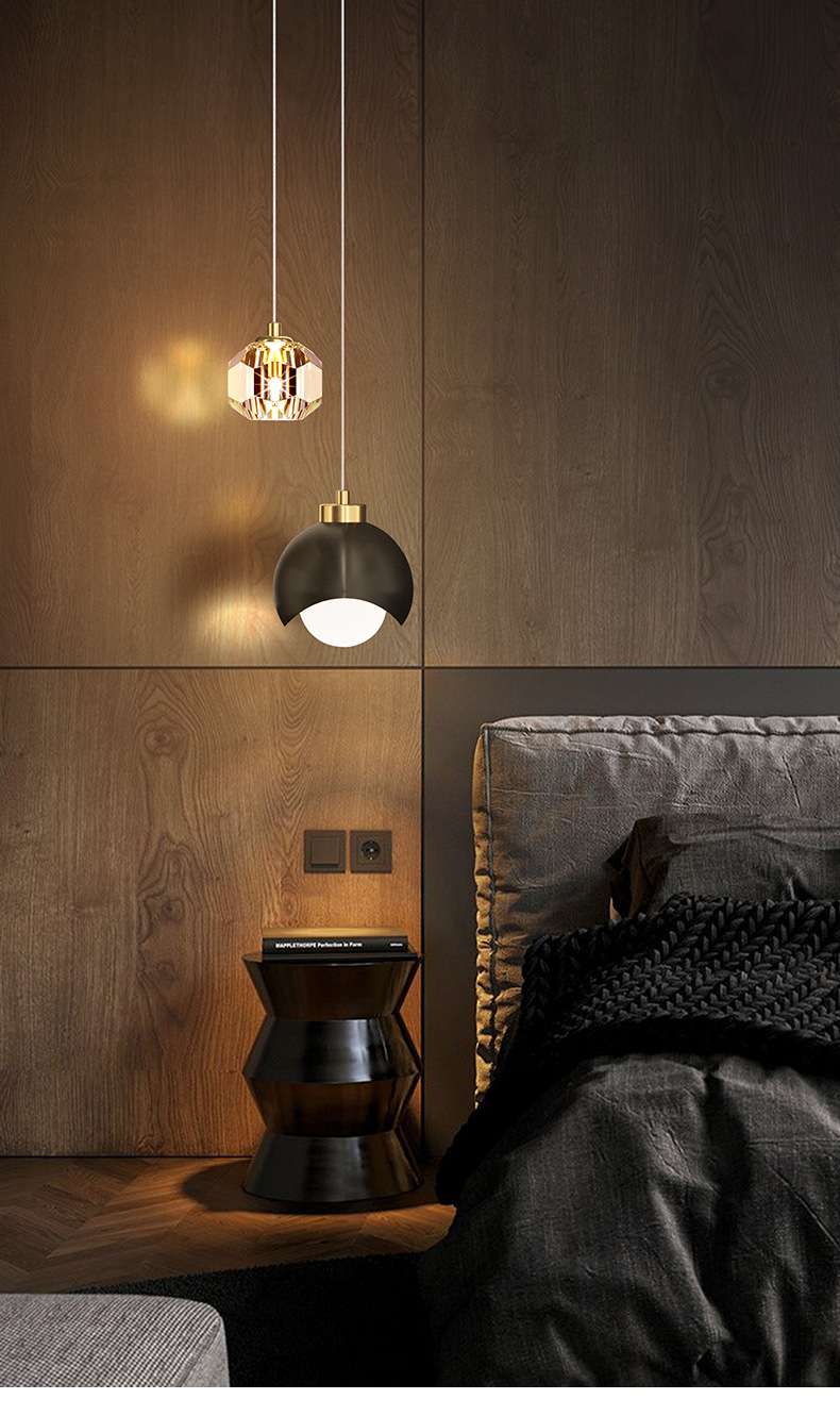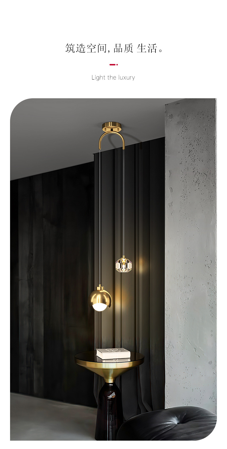 北欧现代餐厅灯金色长线圆形水晶吊灯酒店餐桌卧室床头小吊灯