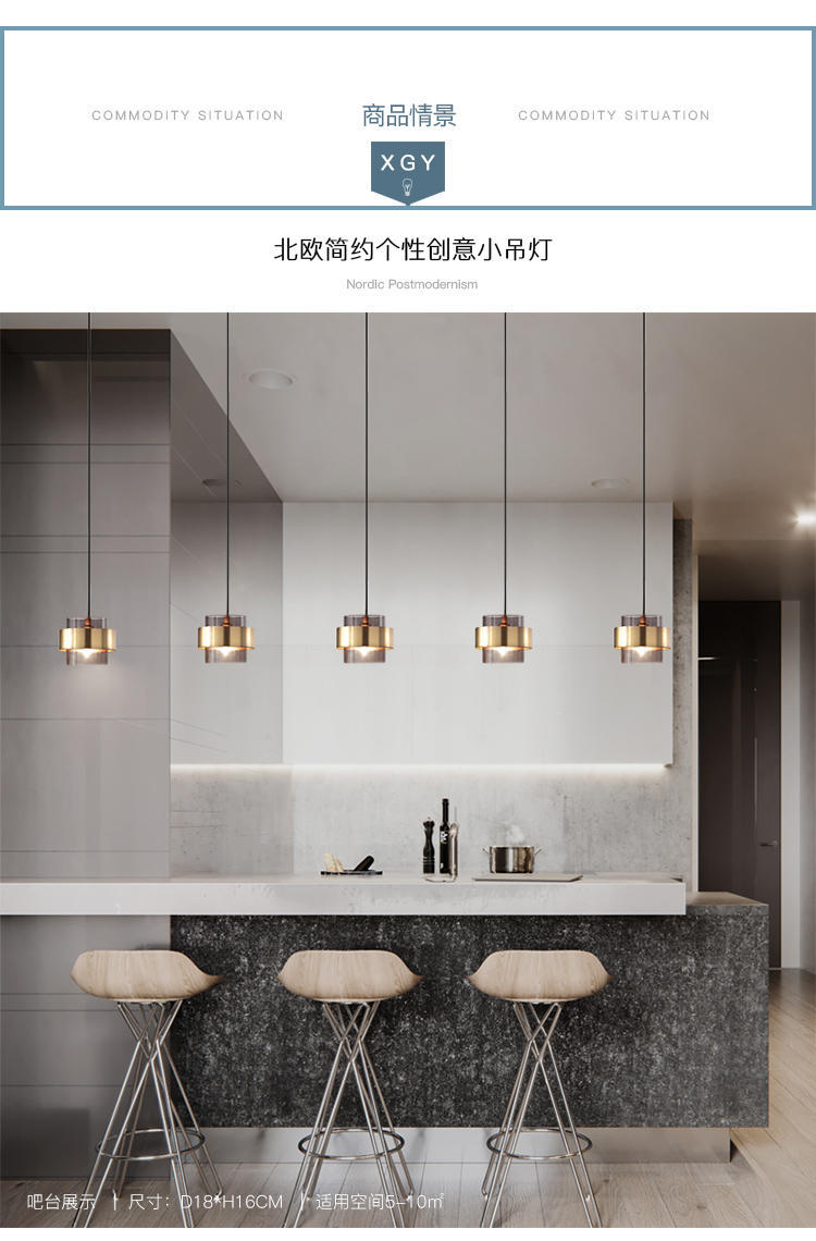 北欧后现代玻璃小吊灯简约个性餐厅床头服装店橱窗吧台单三头吊灯