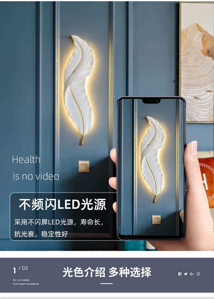 迈娅商城 轻奢羽毛壁灯客厅墙壁灯床头灯壁灯