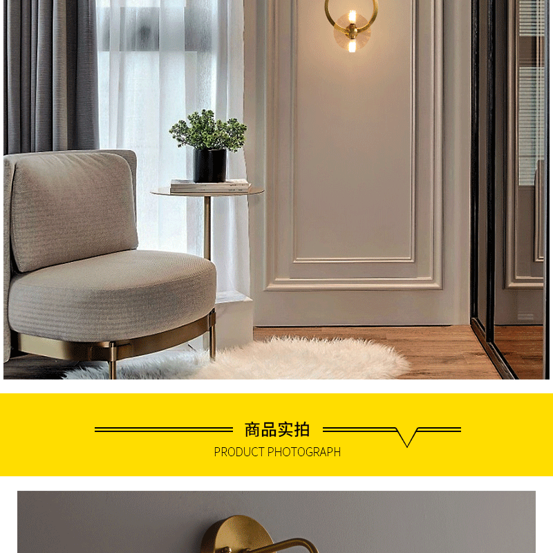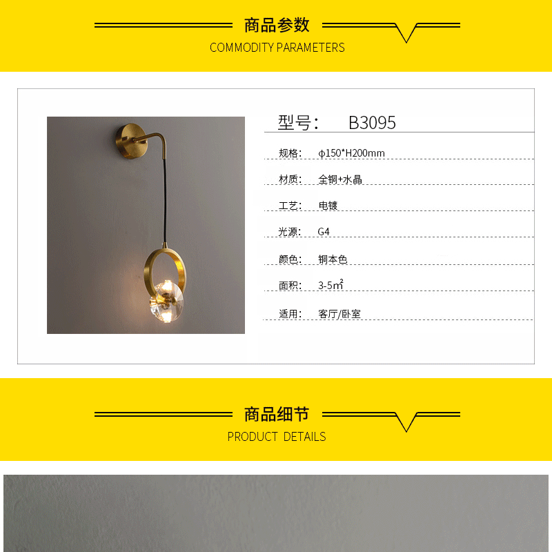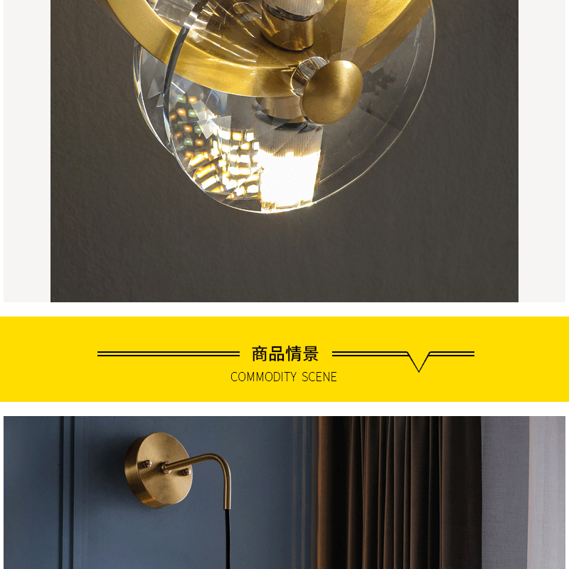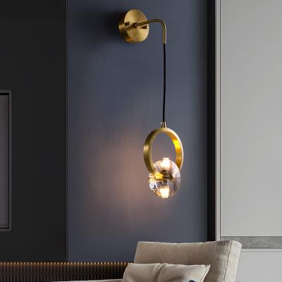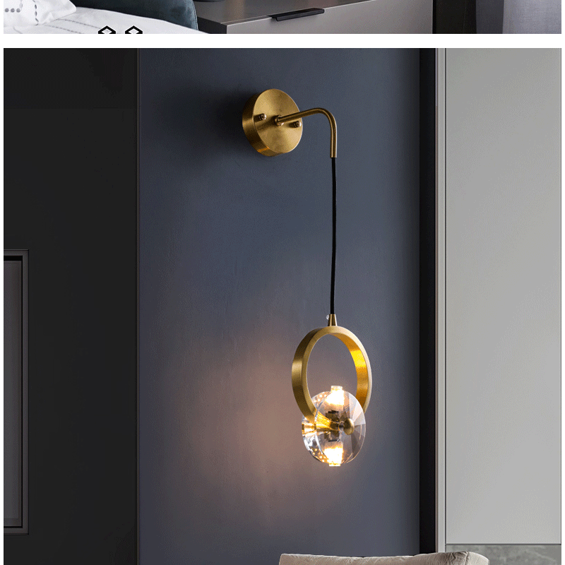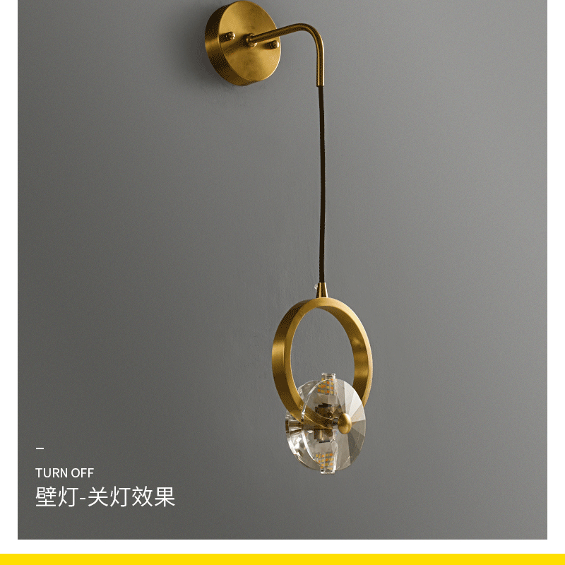 单头全铜吊灯背景墙壁灯简约过道走廊创意卧室床头全铜水晶壁灯