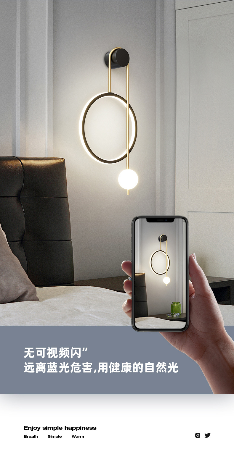 北欧现代简约背景墙LED灯卧室壁灯主卧网红床头灯创意室内灯