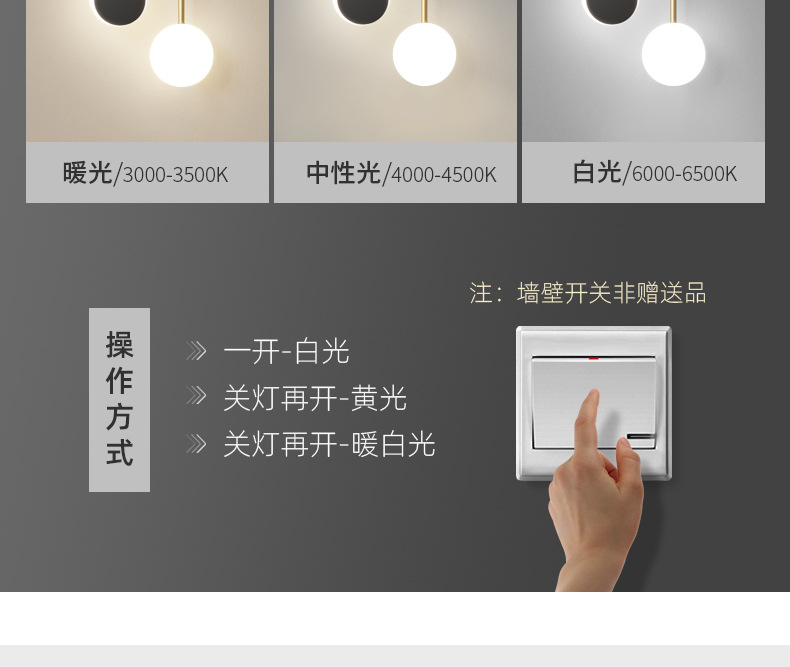 迈娅商城 LED灯卧室壁灯主卧床头灯创意室内灯