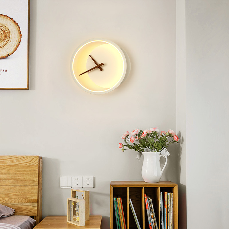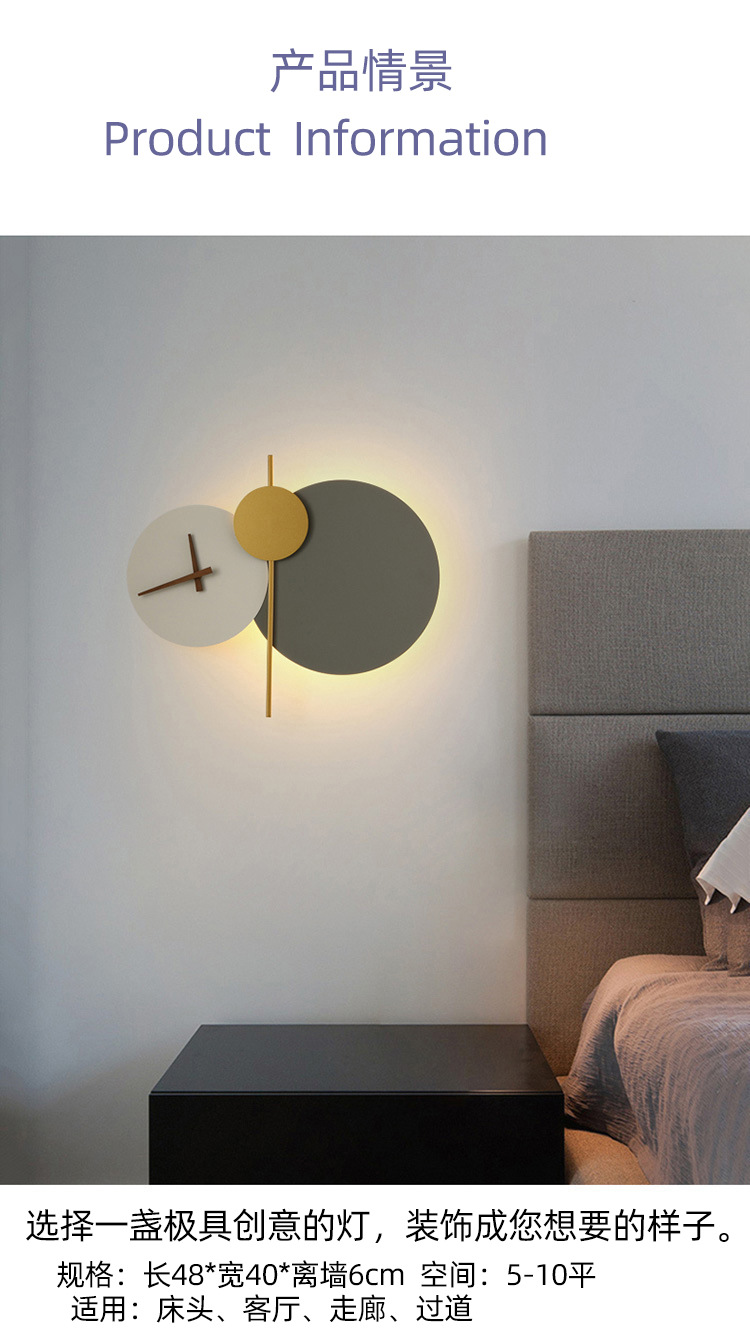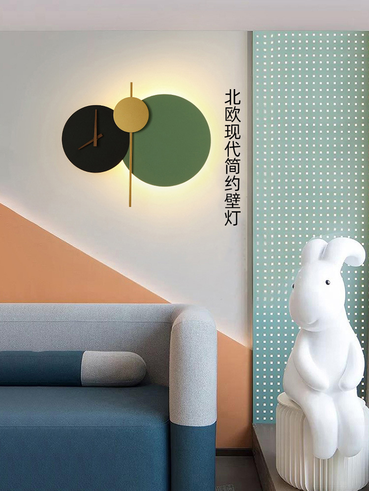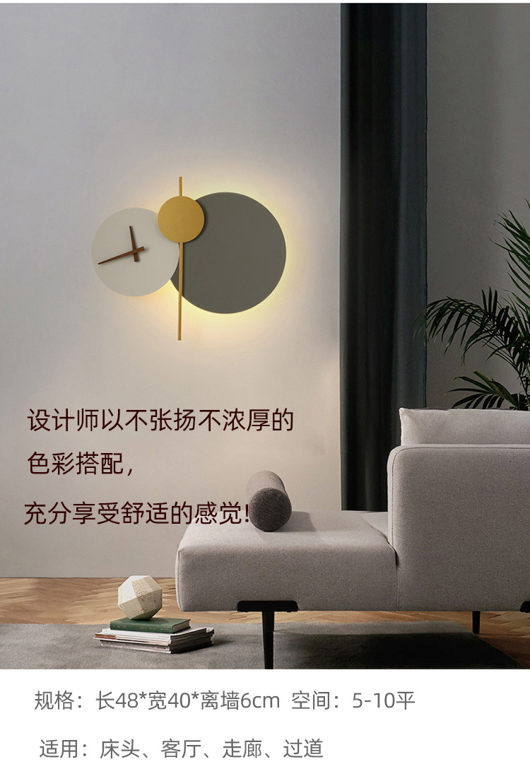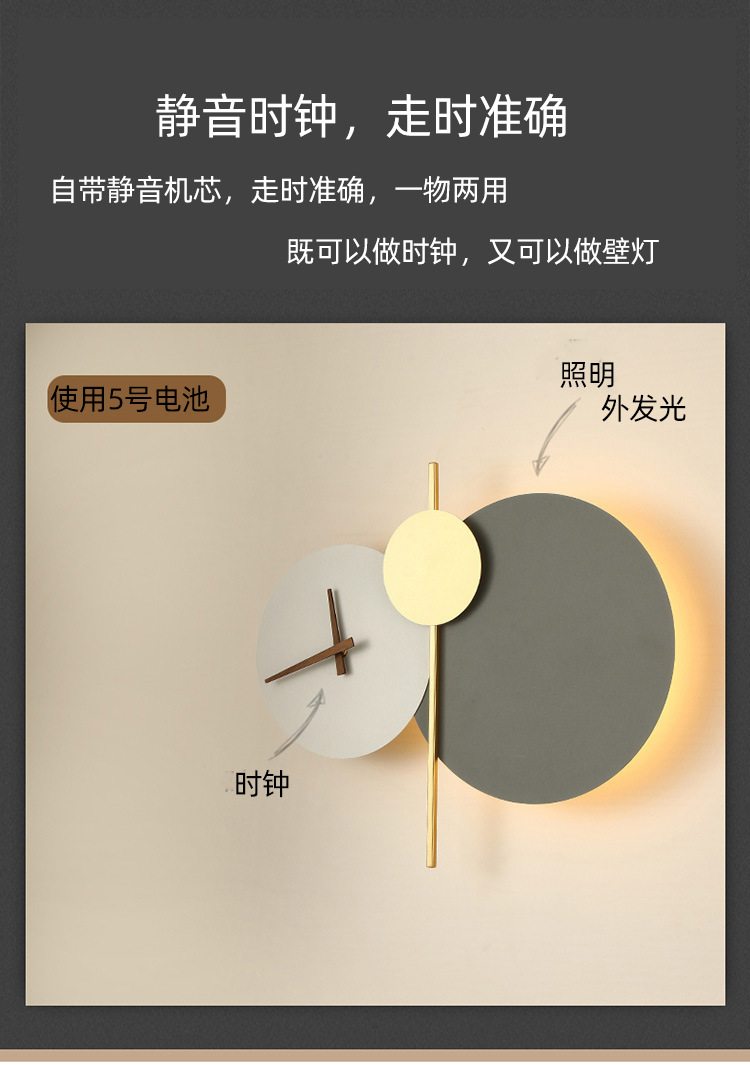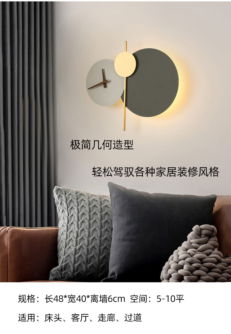 北欧卧室床头时钟表壁灯简约现代简约客厅背景墙走廊过道挂钟灯具
