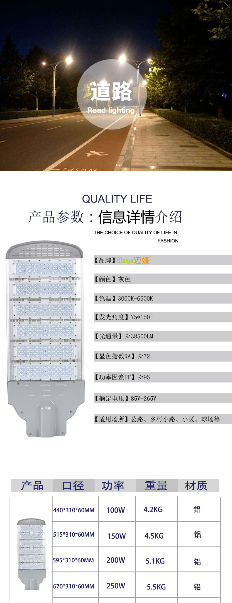 LED路灯头户外防水100w150w模组路灯200广场新农村小区高杆道路灯