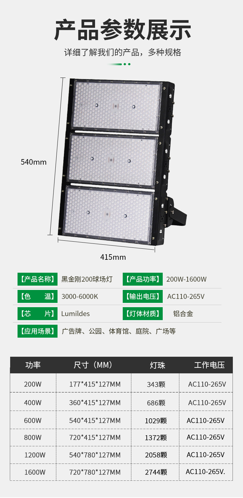 Led新款300w400w600w1000w压铸模组高杆灯球场灯投光灯