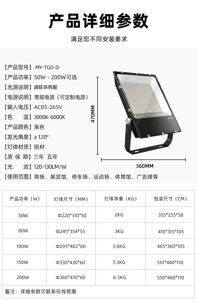 led泛光灯户外30W 50W 80W 黑色外壳室外投光灯