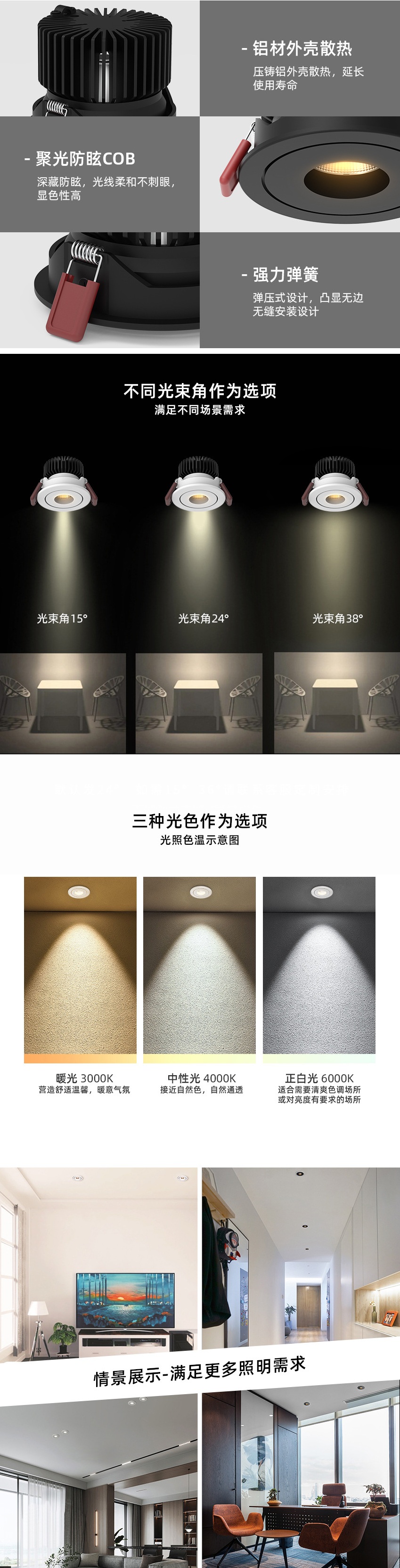 嵌入式深防眩LED射灯家用商用卧室客厅酒店天花COB无主灯暗装筒灯