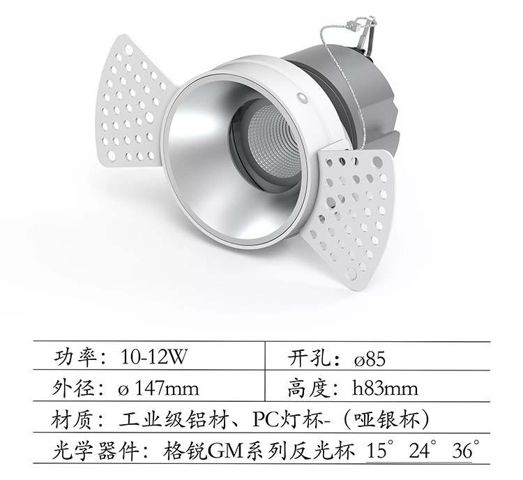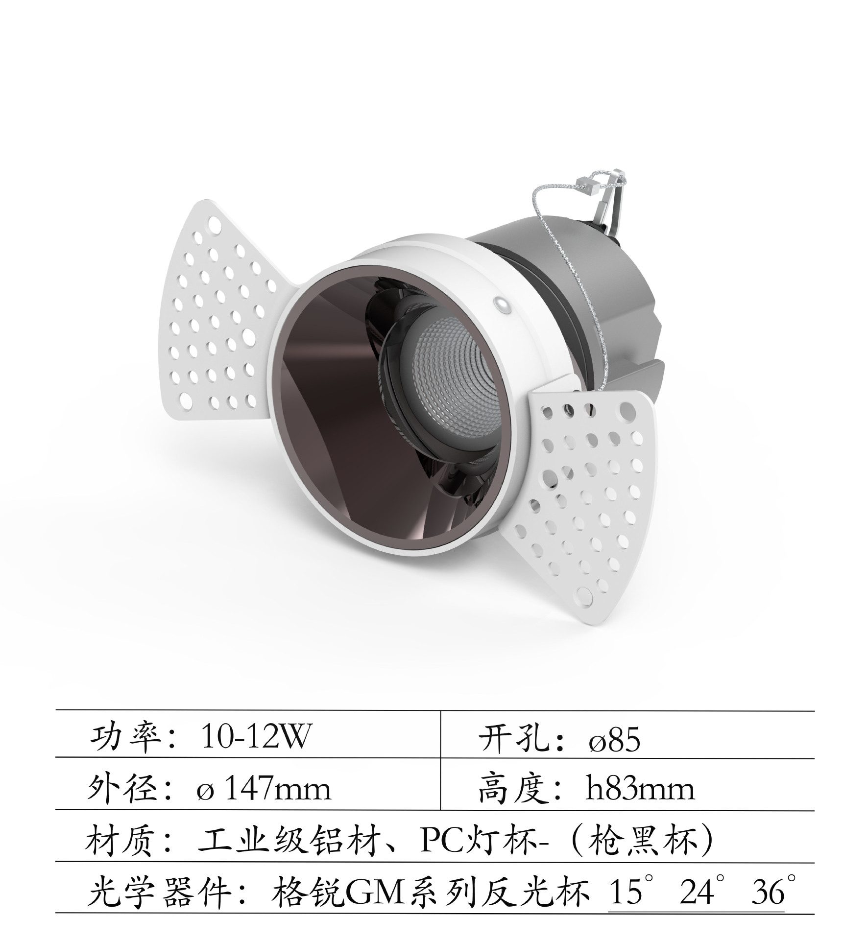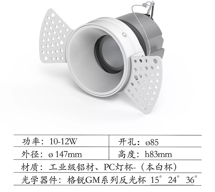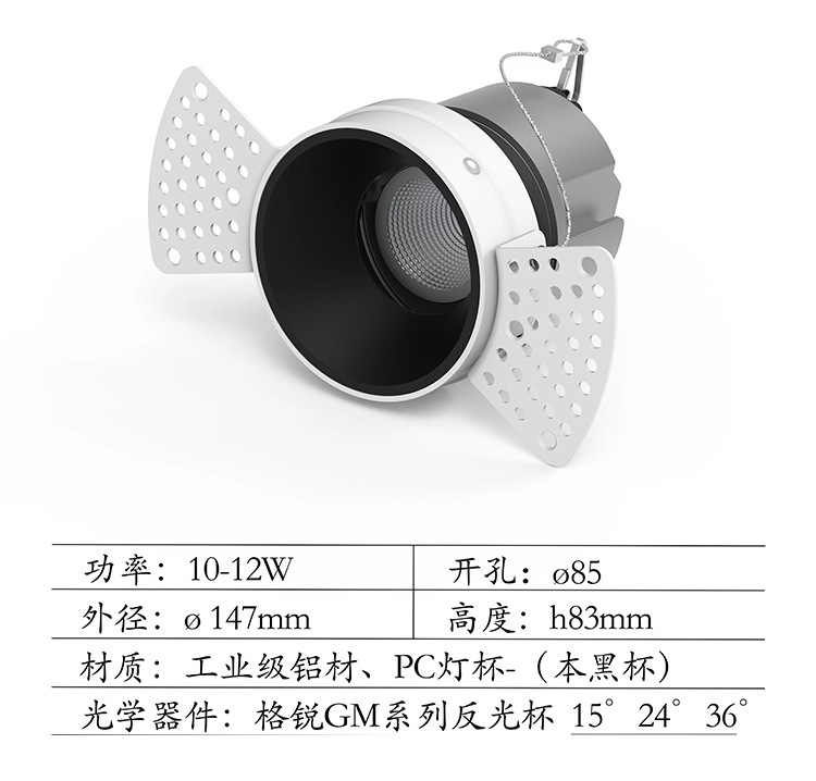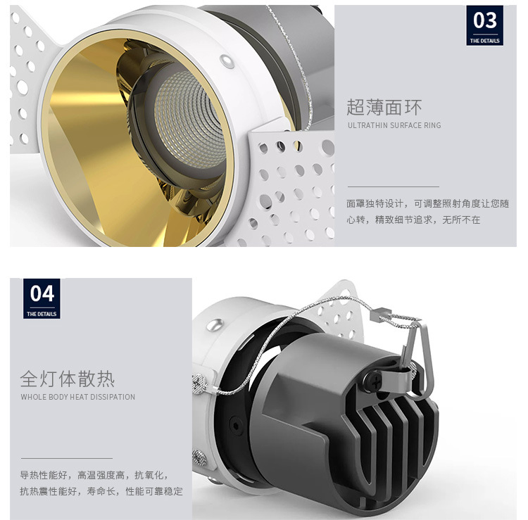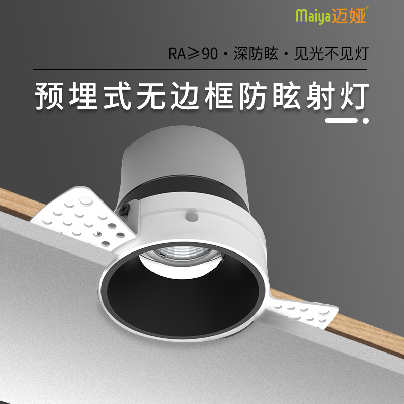 无边框嵌入式LED射灯深防眩光可调边框家用商业超薄COB无主洗墙灯
