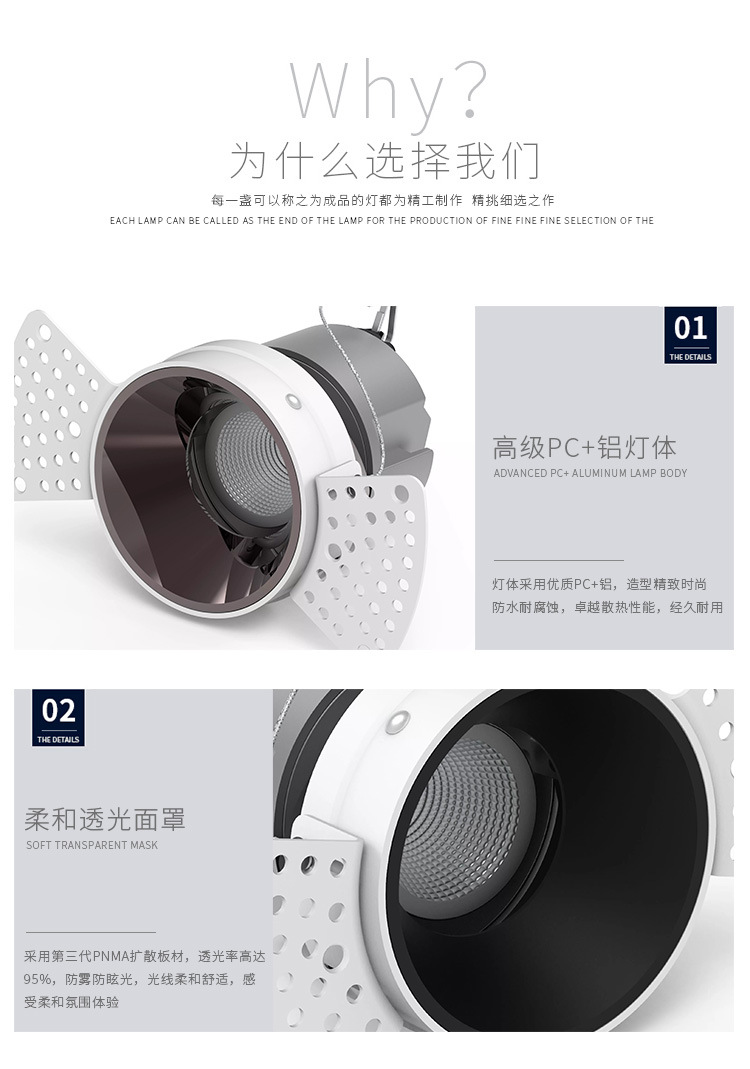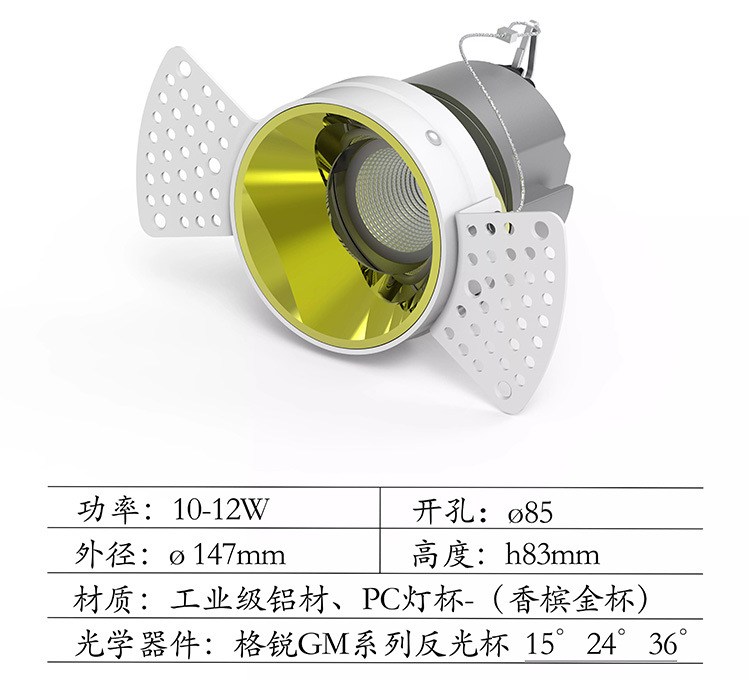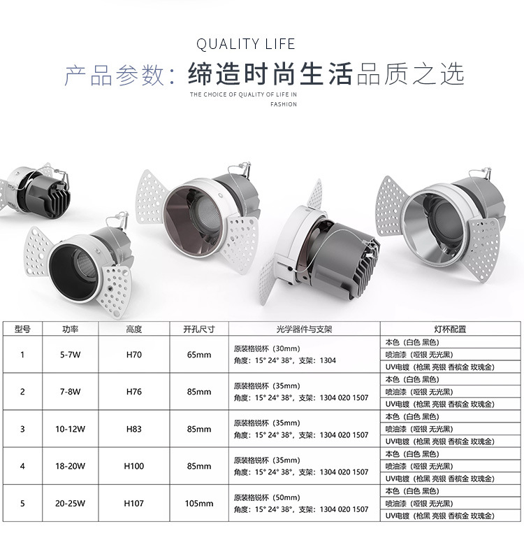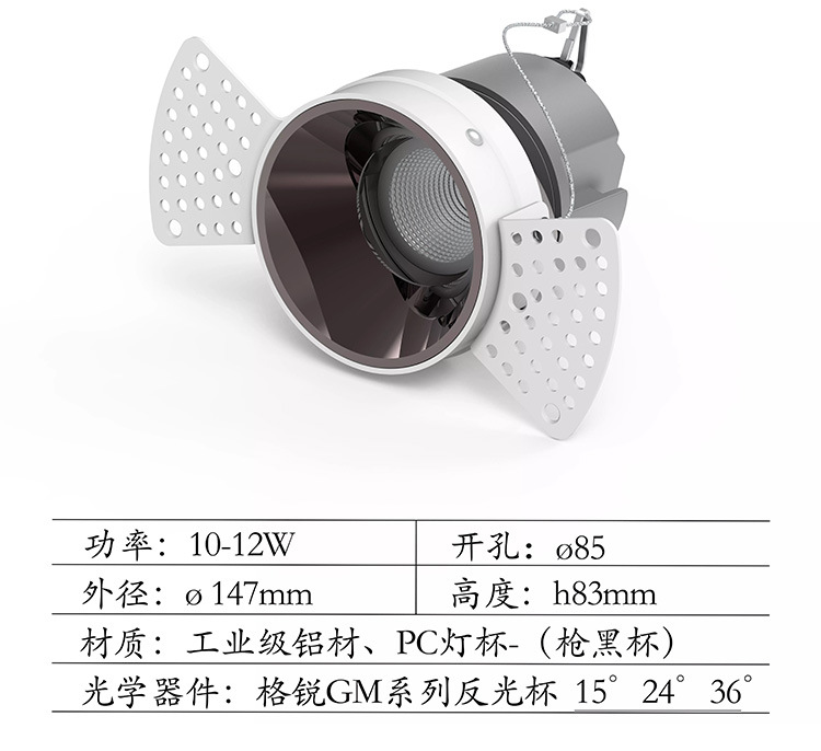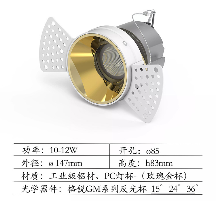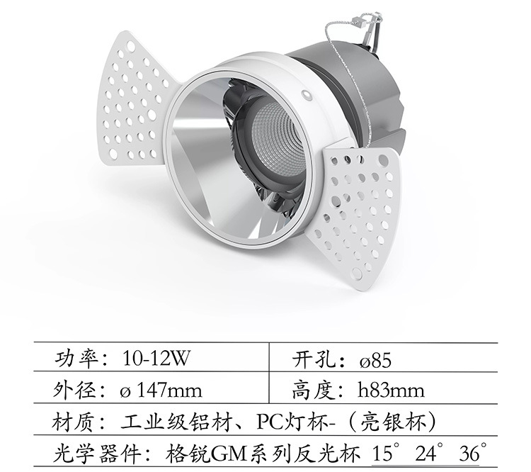 无边框嵌入式LED射灯深防眩光可调边框家用商业超薄COB无主洗墙灯