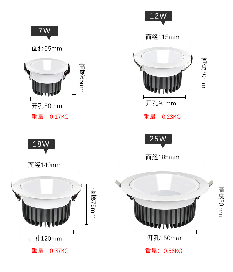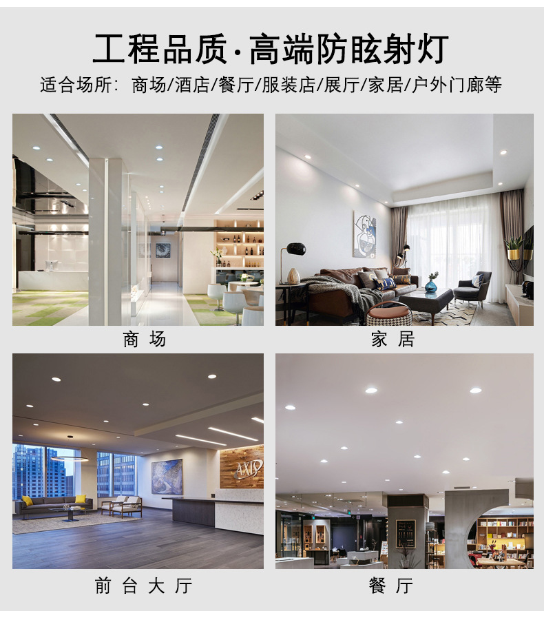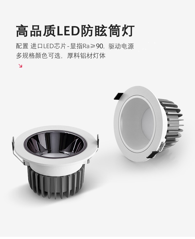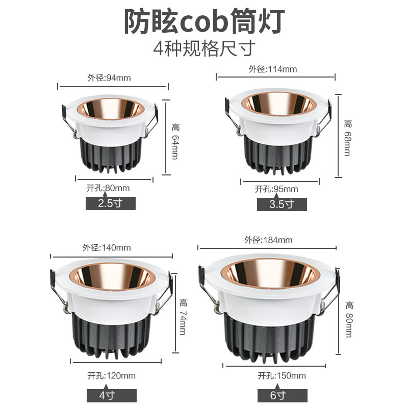 深防眩LED射灯防水防潮嵌入式COB筒灯家用酒店卫生间卧室天花灯